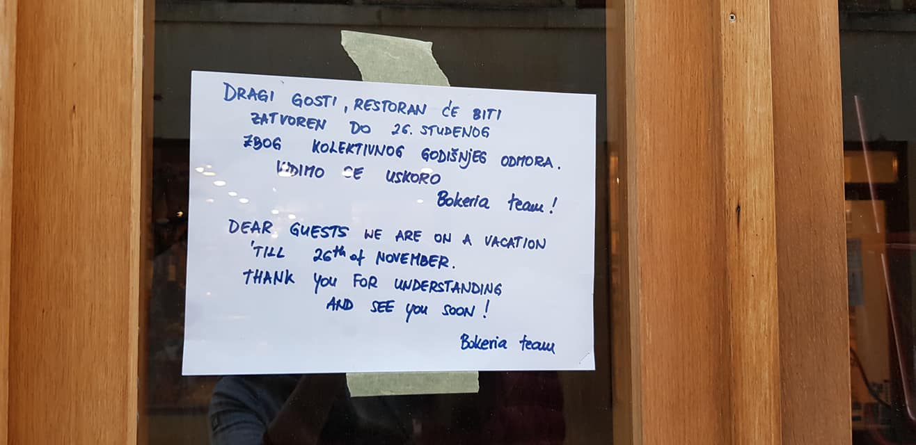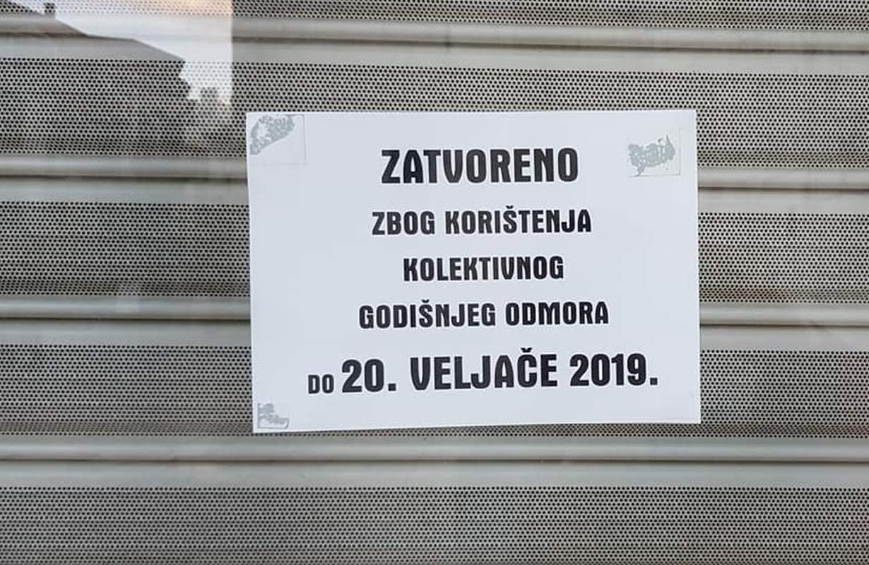 "Closed", "Zatvoreno zbog kolektivnog godišnjeg odmora do 20. veljače 2019.", "Zatvoreno - otvaranje ožujak 2019.", "Dragi gosti, restoran će biti zatvoren zbog kolektivnog godišnjeg odmora" - samo su neke od obavijesti koje vise na lancima zatvorenim objektima po gradu. Računica je jasna, ugostiteljima se ne isplati raditi u hladnijem dijelu godine.