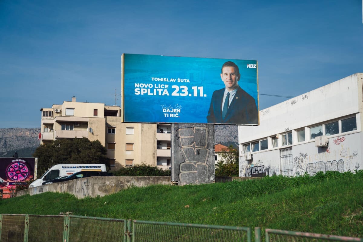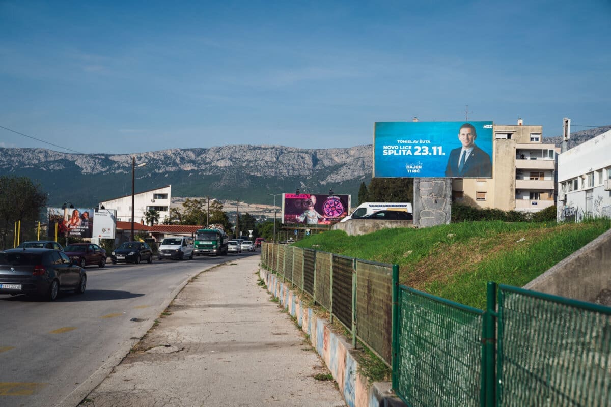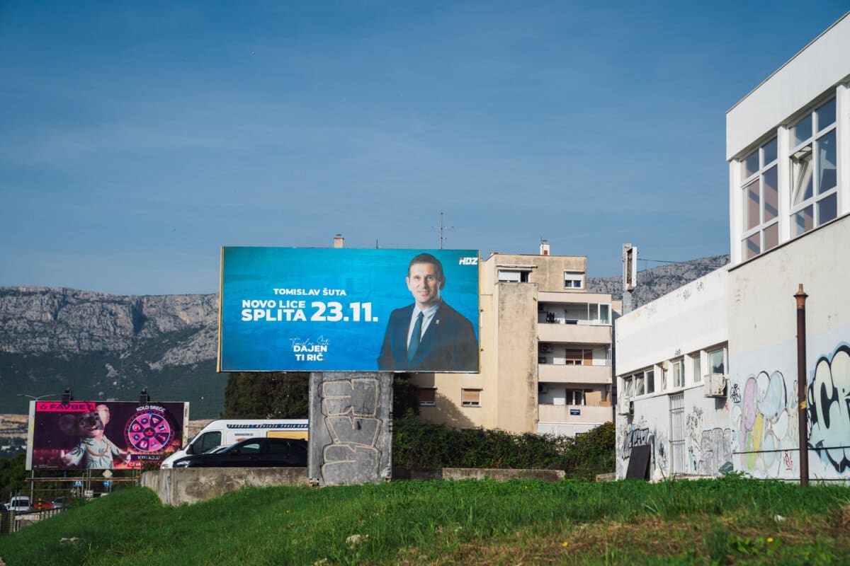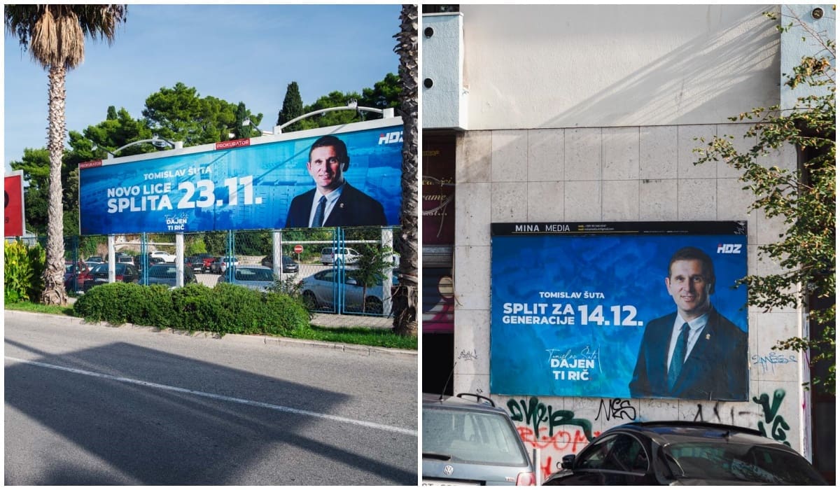 Grad su preplavili jumbo plakati sa Šutinim likom i njegovim porukama. Na jednom od plakata stoji "Novo lice Splita 23.11", dok na drugom rješenju stoji "Split za generacije 14.12". Na svakom od plakata je i Šutin slogan "Dajen ti rič".