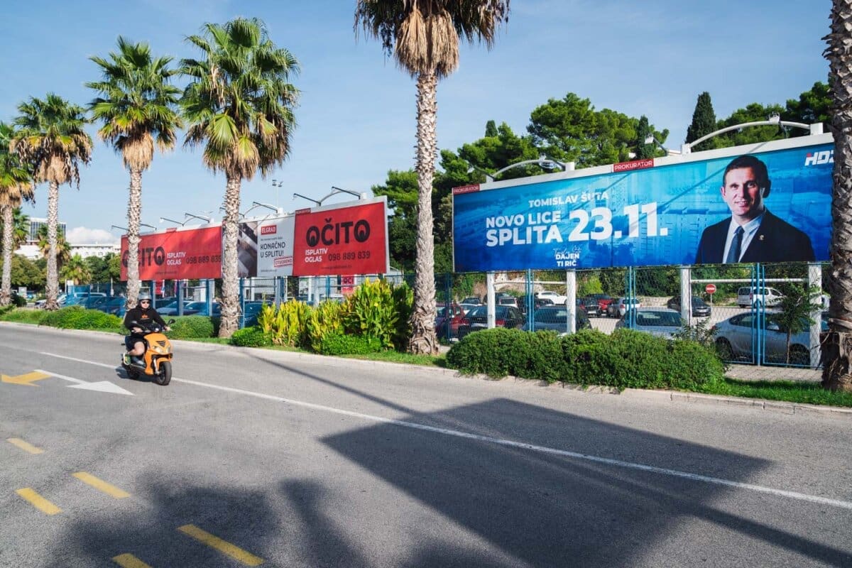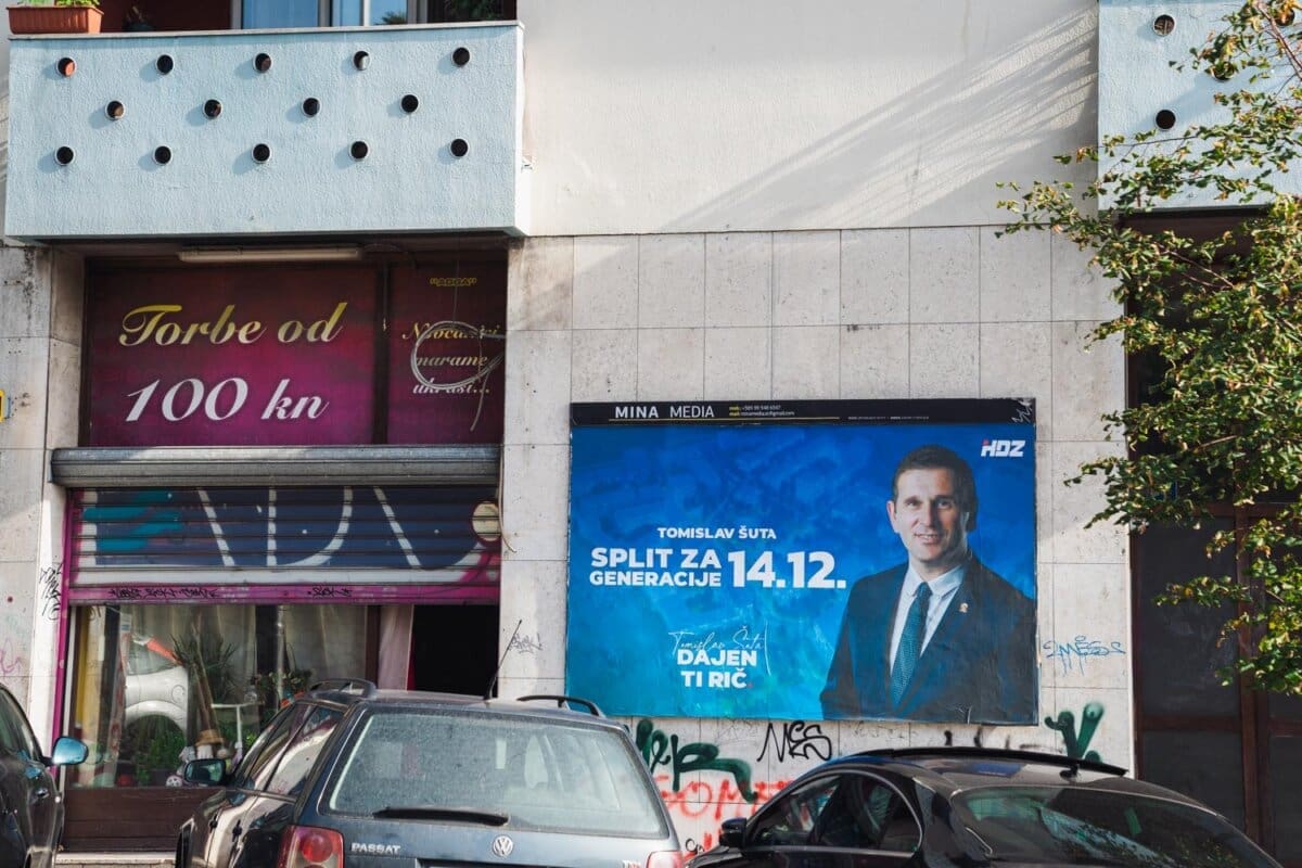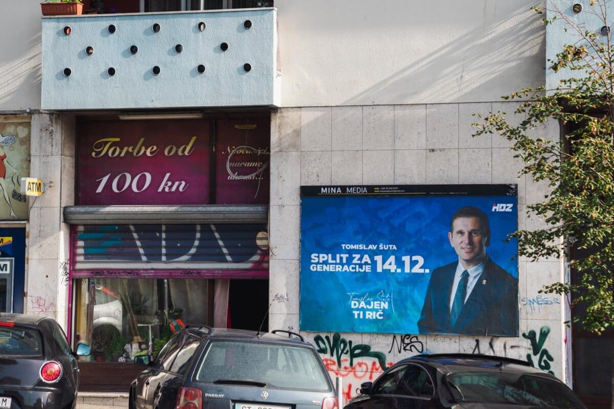 Grad su preplavili jumbo plakati sa Šutinim likom i njegovim porukama. Na jednom od plakata stoji "Novo lice Splita 23.11", dok na drugom rješenju stoji "Split za generacije 14.12". Na svakom od plakata je i Šutin slogan "Dajen ti rič".
