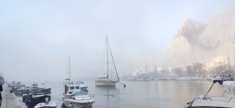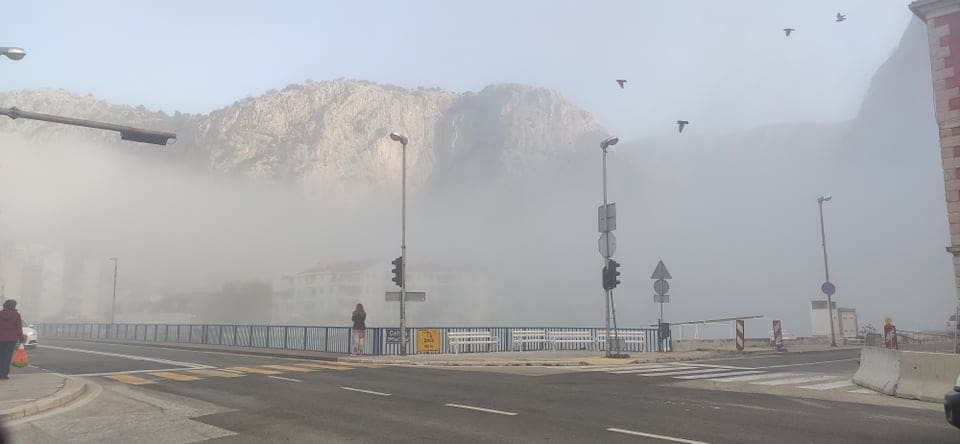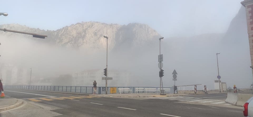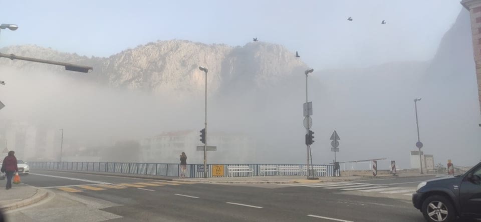 I grad na Cetini, Omiš, probudio se jutros u gustoj magli. Dok je petak u Splitu prošao maglovito, Omiš je bio vedar i sunčan. Međutim, u subotu ga ova klimatska promjena nije zaobišla.