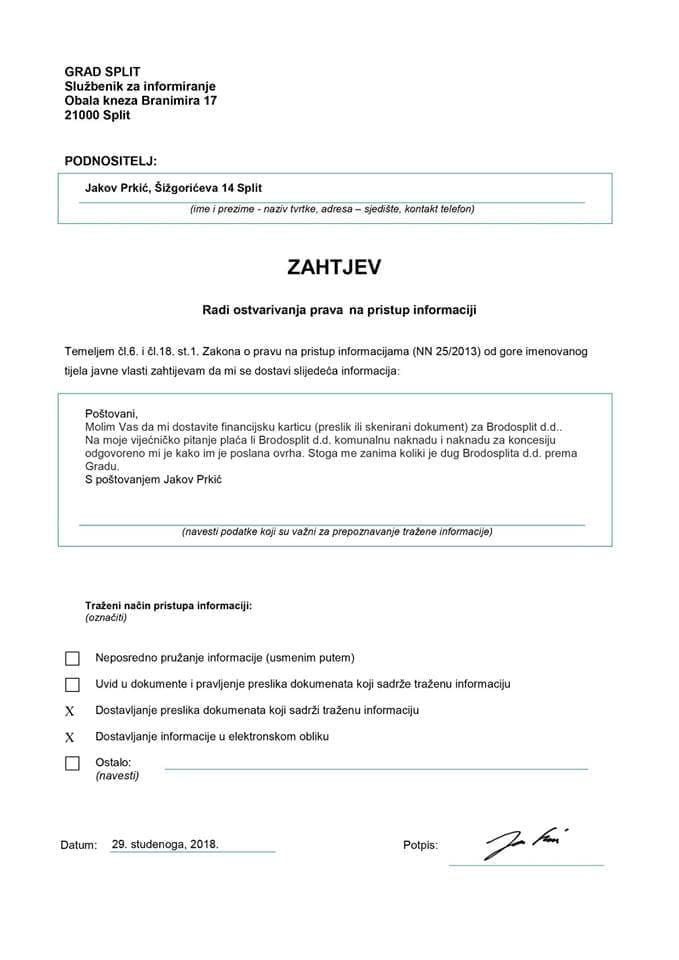 - 29. studenoga 2018. zatražio uvid u dugovanje, odgovor nisam dobio u zakonskom roku,