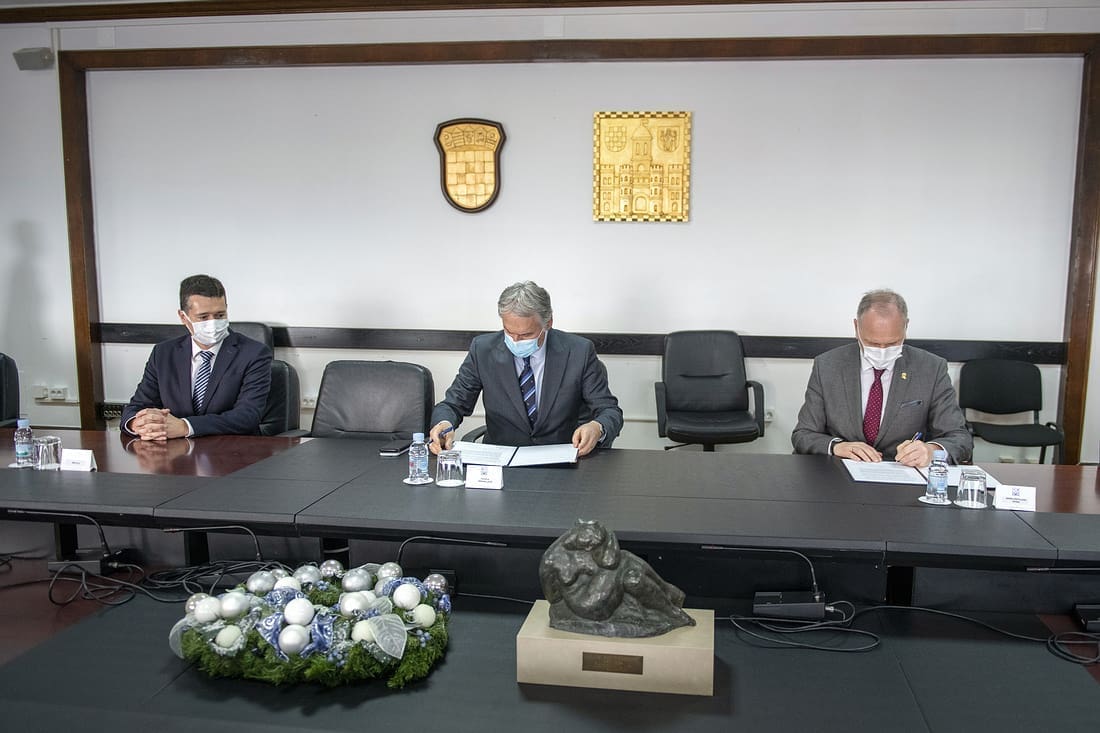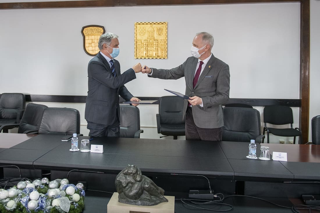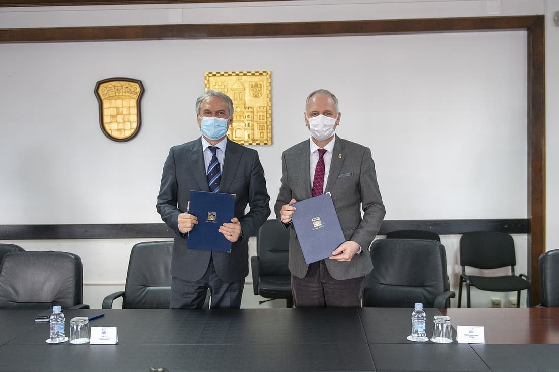 Gradonačelnik Andro Krstulović Opara i rektor splitskog Sveučilišta prof.dr.sc. Dragan Ljutić potpisali su danas u Gradskoj upravi Ugovor o poslovnoj suradnji na provedbi mjera oporavka gospodarstva grada Splita uslijed pandemije COVID 19. Riječ je o Programu inkubacije i edukacije za razvoj poduzetništva i start-upova u visokotehnološkim industrijama za što je u Proračunu osigurano 970.000,00 kn za potpore subjektima malog i srednjeg poduzetništva.