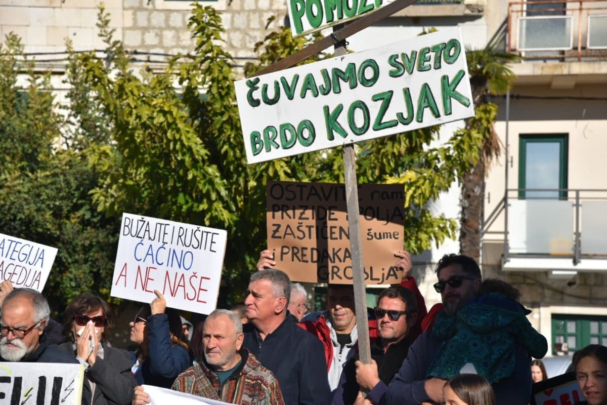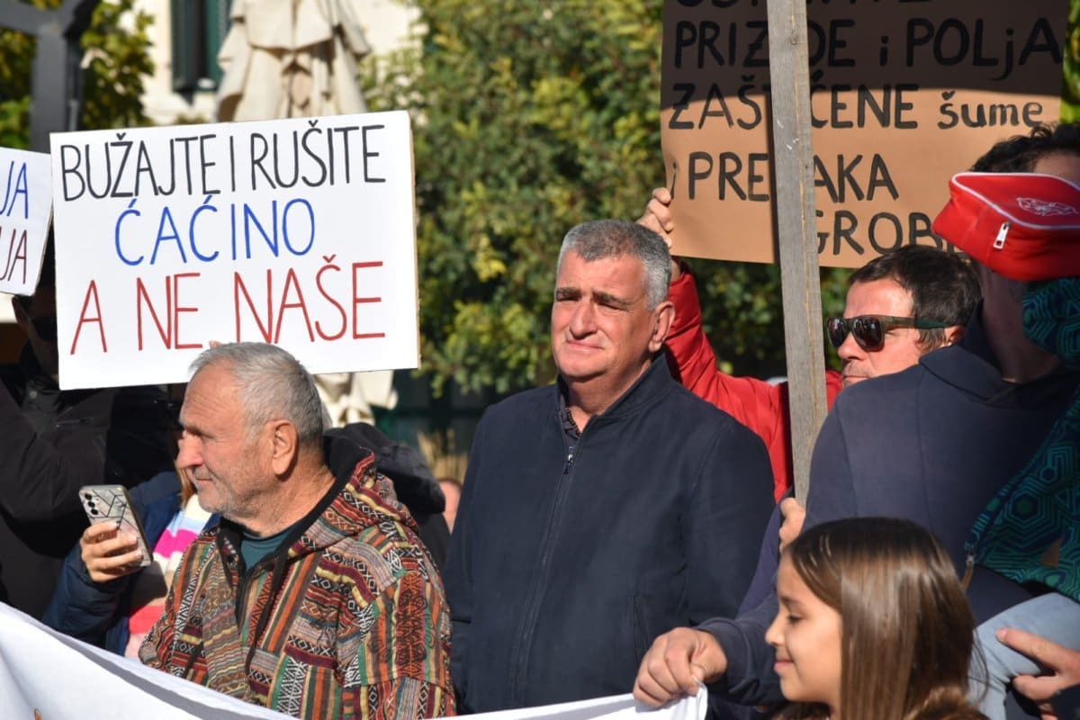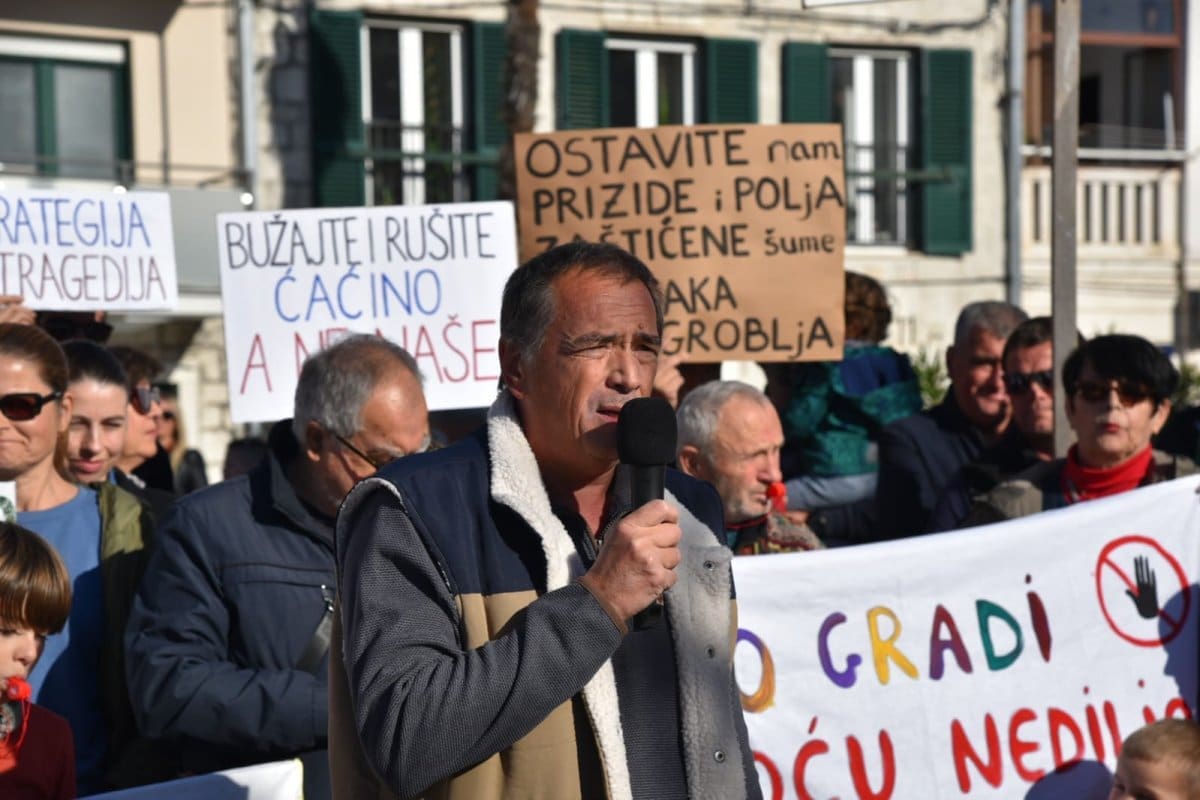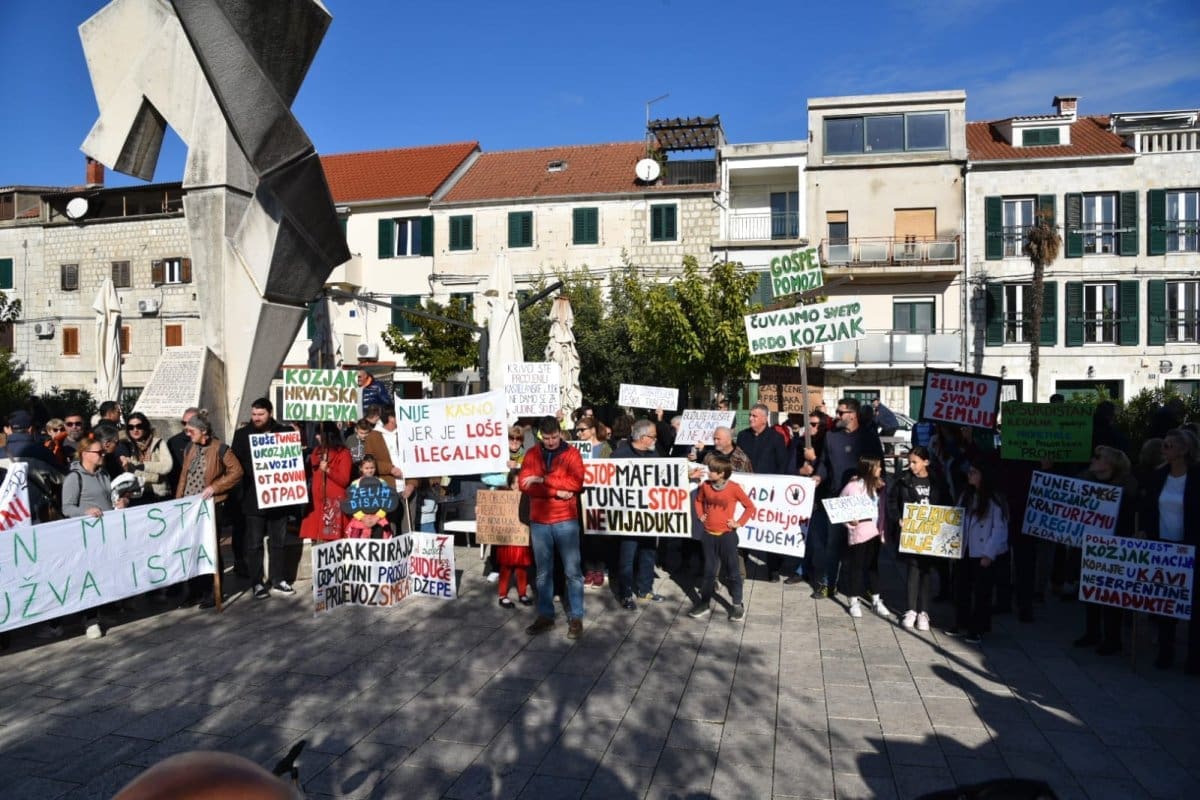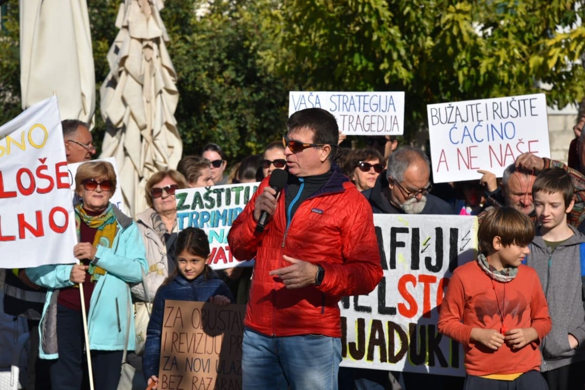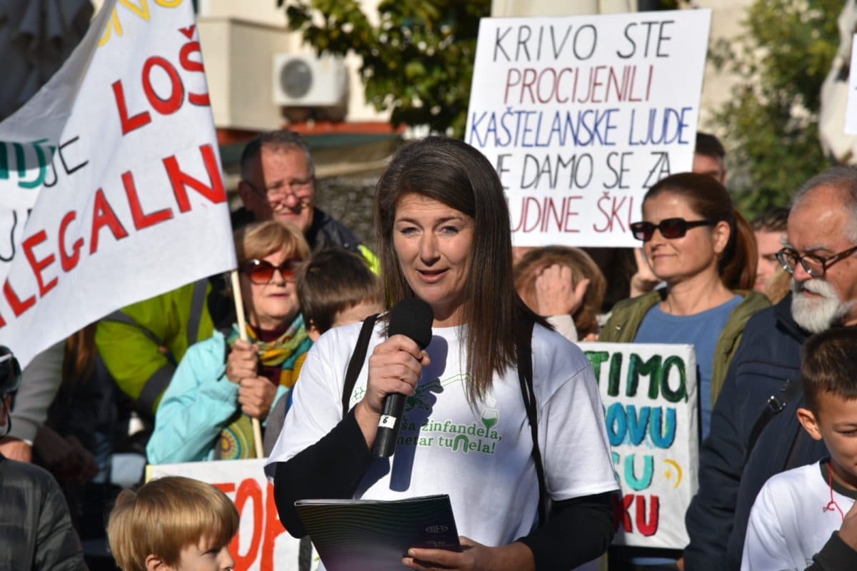 "Nitko od nas nije protiv napretka niti protiv poboljšanja infrastrukture ali smo protiv rada nedjeljom, po noći. Protiv smo uzurpiranja našeg zemljišta, nelegalne gradnje, uništavanja našeg Kozjaka. Zaustavimo ovaj projekt, dovedimo stručnjake jer ovaj projekt je loš. Nismo protiv Zagore jer ovaj projekt ne donosi nikome ništa. Donosi samo štetu Kaštelima", poručio je Tomislav Tadin iz Građanske inicijative na samom početku.
