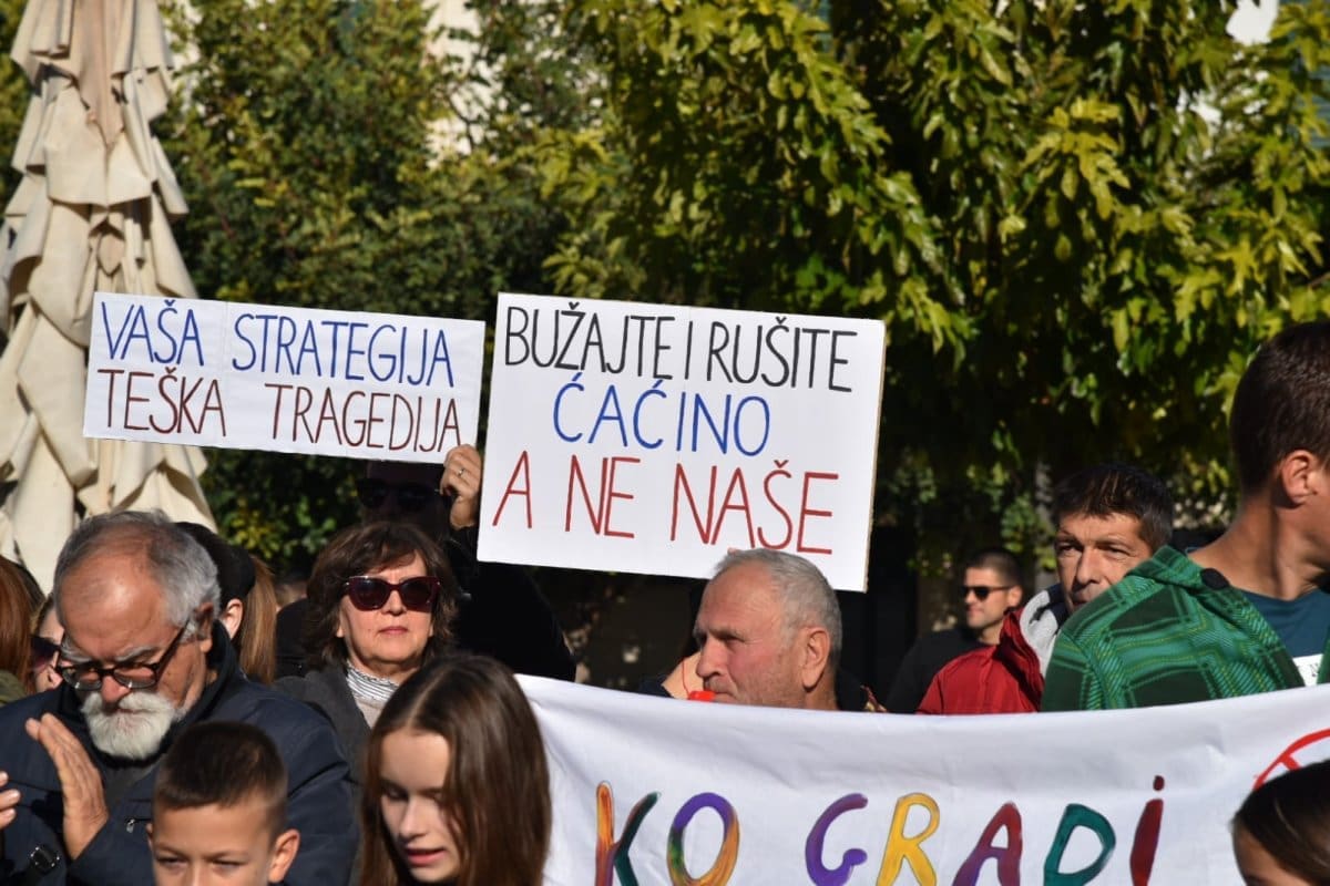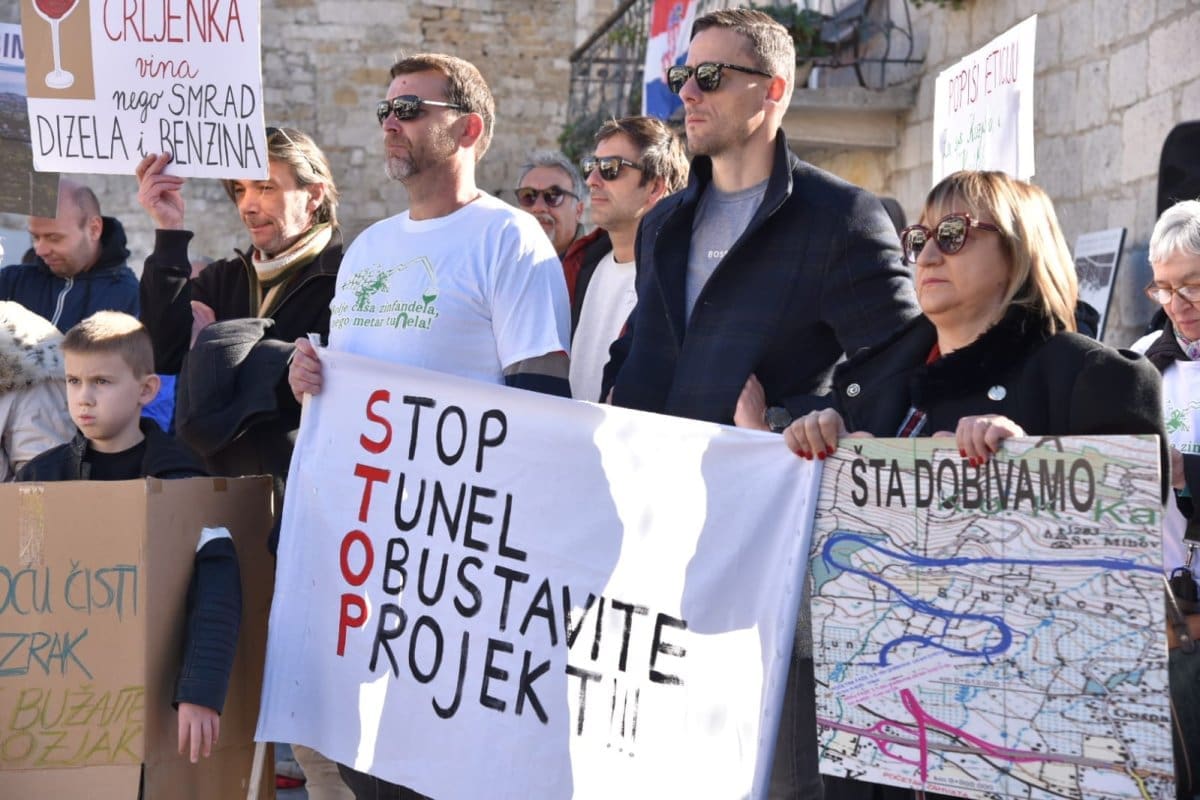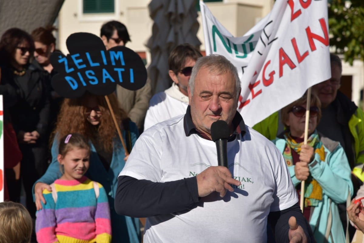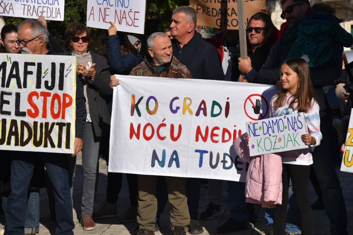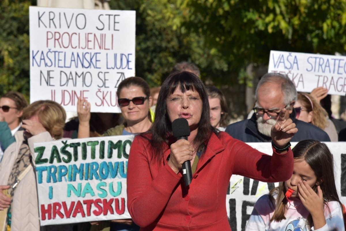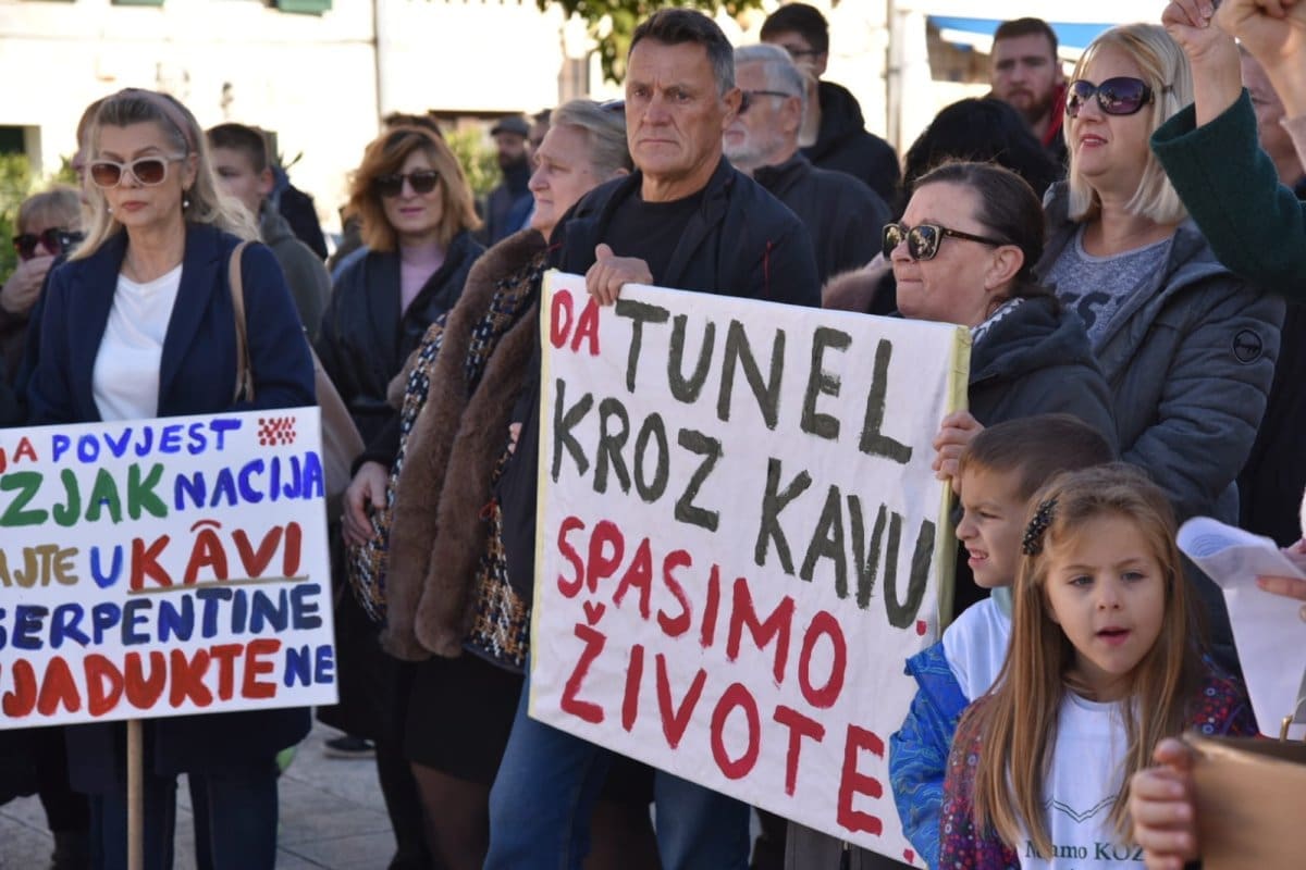 "Nitko od nas nije protiv napretka niti protiv poboljšanja infrastrukture ali smo protiv rada nedjeljom, po noći. Protiv smo uzurpiranja našeg zemljišta, nelegalne gradnje, uništavanja našeg Kozjaka. Zaustavimo ovaj projekt, dovedimo stručnjake jer ovaj projekt je loš. Nismo protiv Zagore jer ovaj projekt ne donosi nikome ništa. Donosi samo štetu Kaštelima", poručio je Tomislav Tadin iz Građanske inicijative na samom početku.