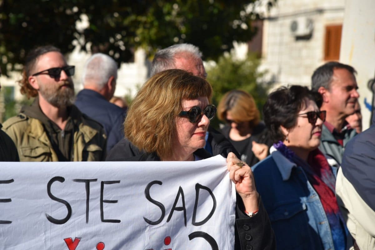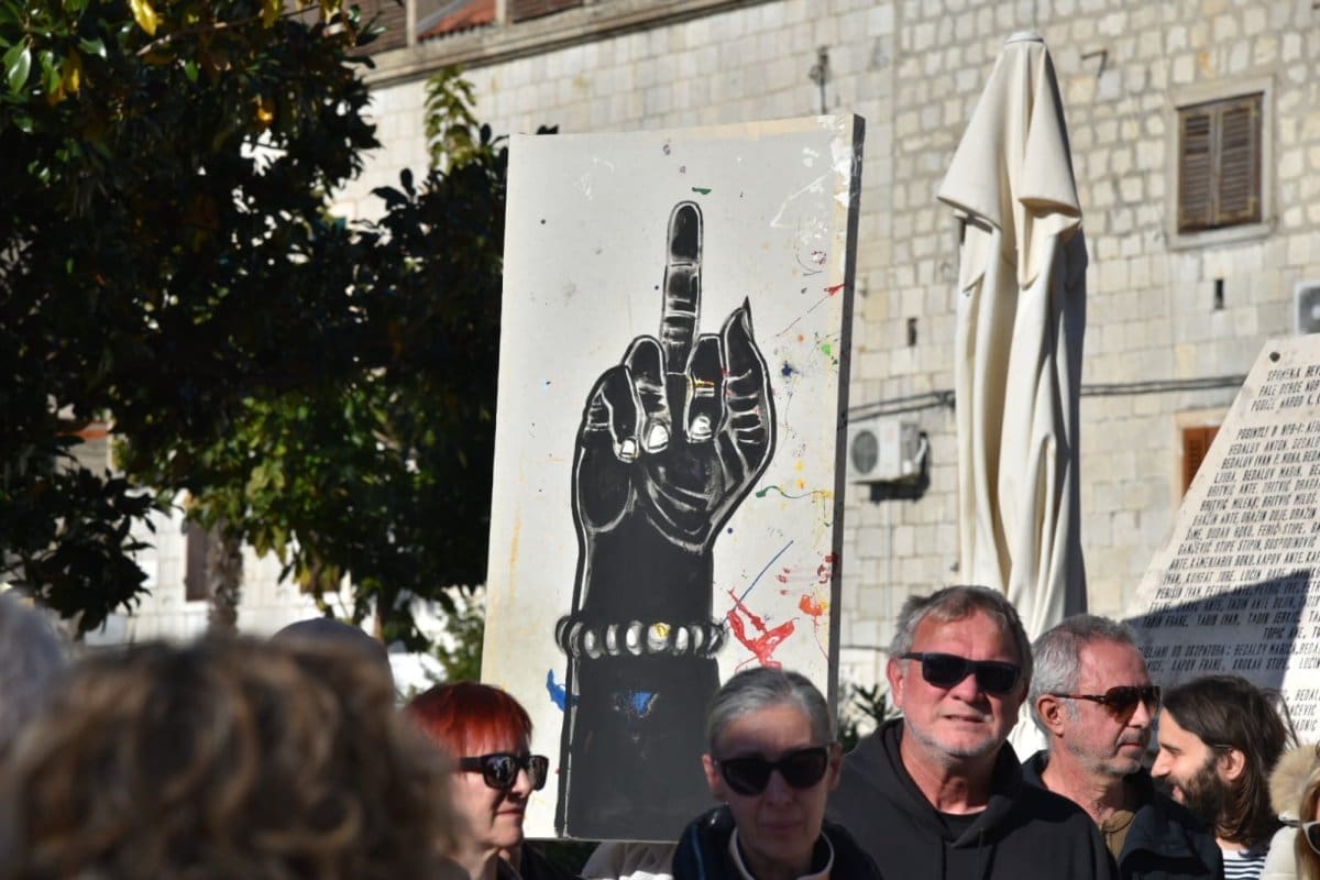 Ime Ante Sanadere provlačilo se kroz cijeli protest te ga je u obraćanju spomenuo i Neven Poparić.