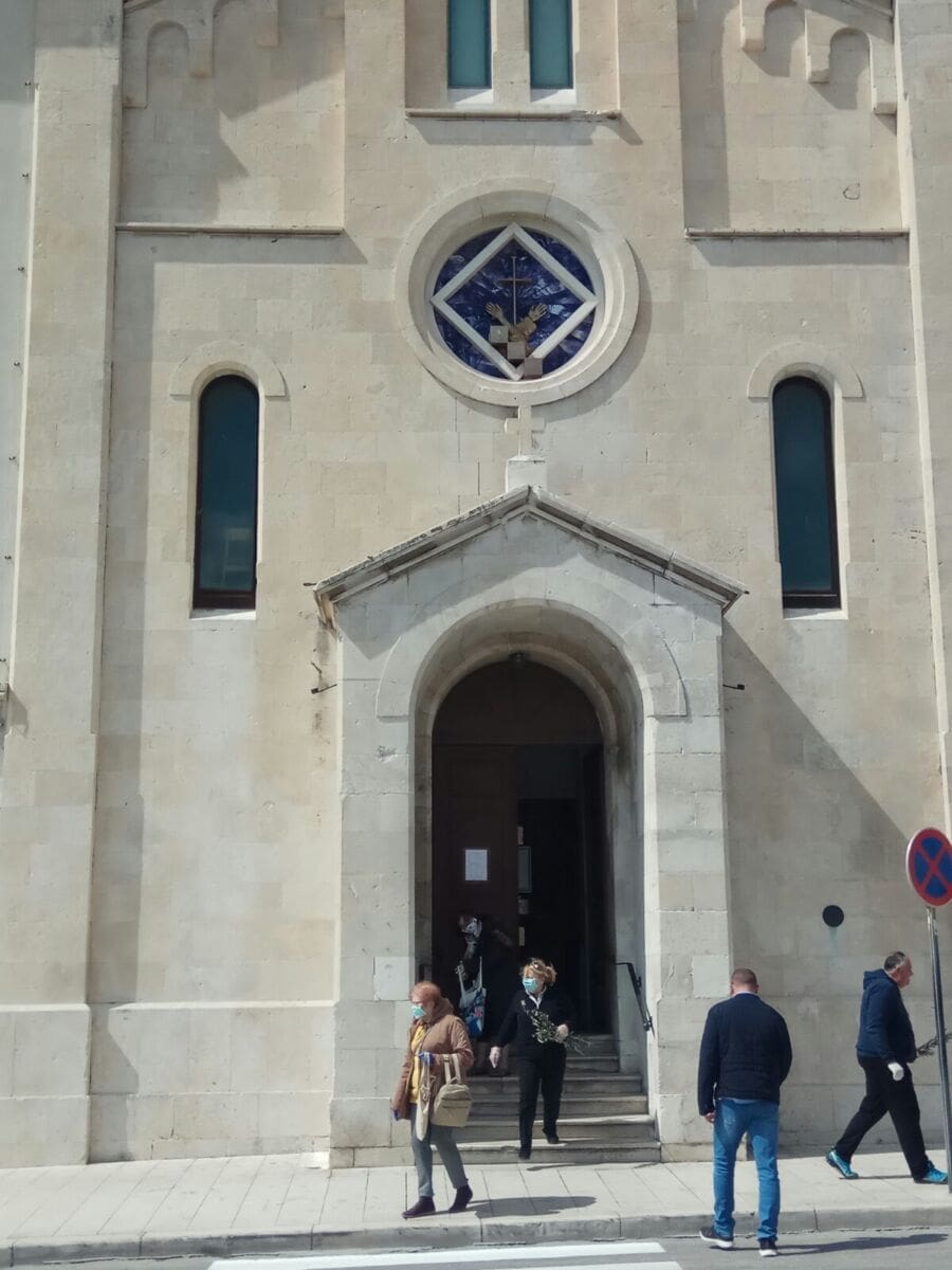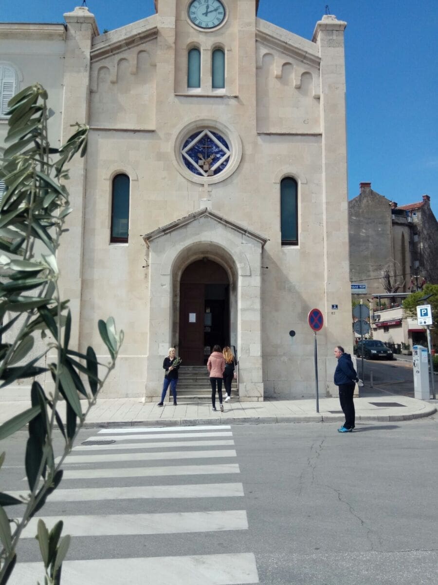 Zbog proglašenih mjera uslijed epidemije koronavirusa, dodjela blagoslovljenih maslinovih grančica održala se na Trgu Franje Tuđmana ispred crkve svetog Frane.