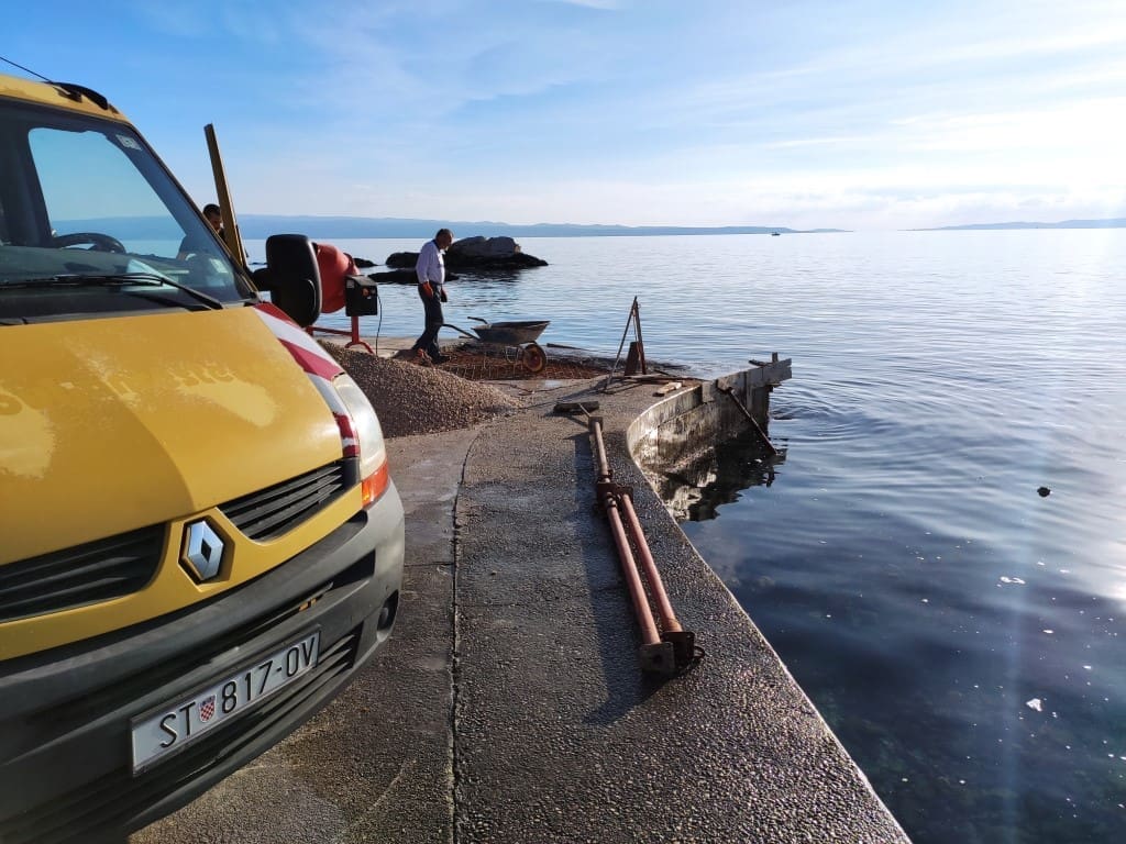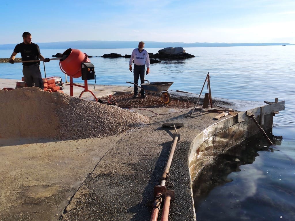 Konačno su u tijeku radovi na sanaciji dijelova obale koje je oštetilo more. Uz sve, sanira se i mul, odnosno most koji služi kao skakaonica.
