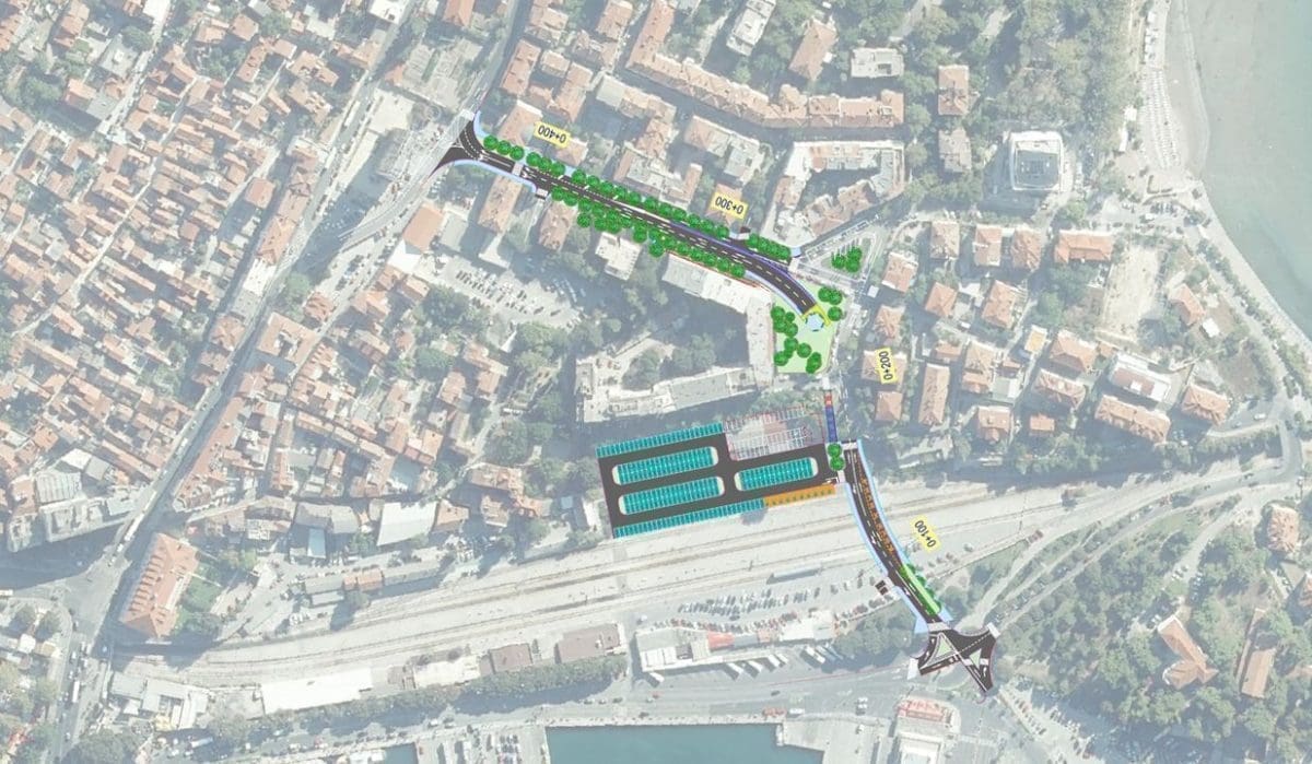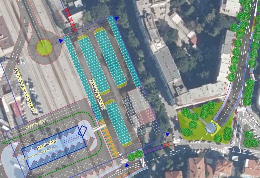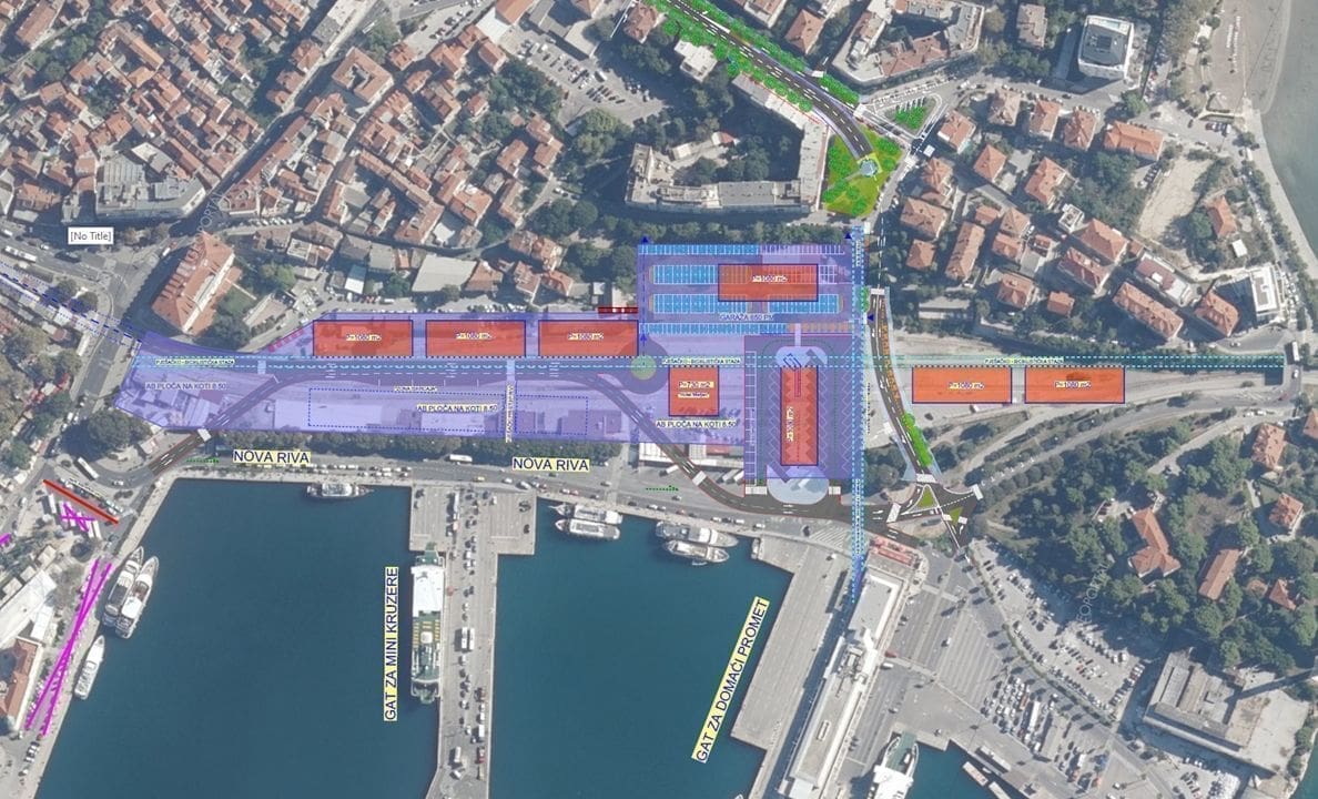 Time bi se objedinila pješačka zona na Rivi i Istočnoj obali. Svi planirani prometni sadržaji ostaju nevidljivi, smješteni na prostoru ex željezničkog kolodvora, skriveni ispod armiranobetonske ploče pješačkih površina na gornjoj etaži. Kao vidljivi dio ovog prometnog rješenja ostaje krivina kod Tuđmanovog spomenika i krivina pred ulazom u trajektnu luku. Svi ostali prometni sadržaji (javna garaža, autobusni kolodvor, taxi stajalište, stanice JGP) planirane su kao “podzemne” na koti postojećeg željezničkog platoa.