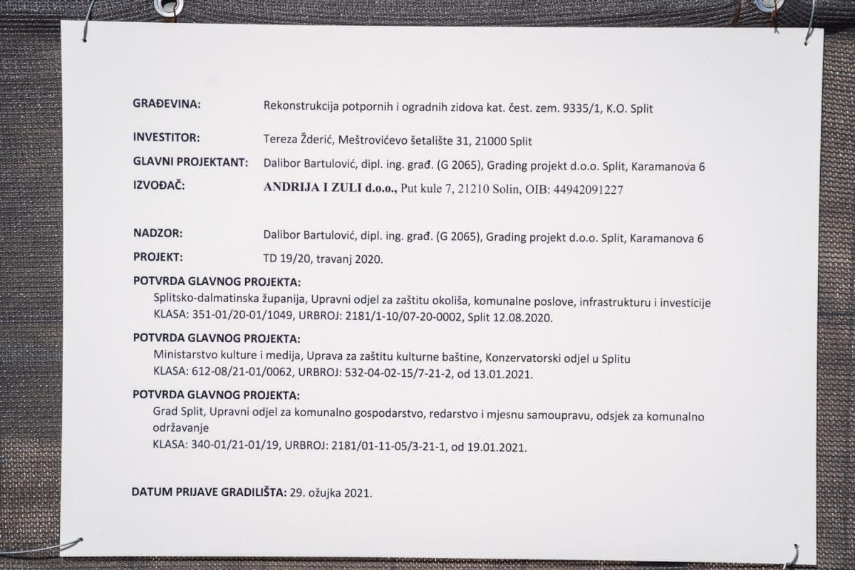 Može se reći da je to rezultat sastanka predstavnika Javne ustanove i Građevinske inspekcije na kojem je rečeno da je moguće i zatvaranje gradilišta. Na njemu se navodno samo rekonstruiraju potporni i ogradni zidovi na čestici 9335/1. Jučer je na gradilištu opet bilo živo. Nasipao se šljunak između zidova i pokosa, ali su izmjerene trenutne visine betonsko-armiranih zidova jer na nekima na vrhu "viri" čelična armatura i koliko će još "narasti" će se tek naknadno saznati. Prema Pravilniku o jednostavnim i drugim građevinama i radovima bez građevinske dozvole i glavnog projekta može se graditi ogradni zid visine do 1,6 metra i potporni zid visine do jednog metra mjereno od najnižeg dijela konačno zaravnanog i uređenog terena uz ogradu, odnosno zid do najviše točke ograde, odnosno zida.