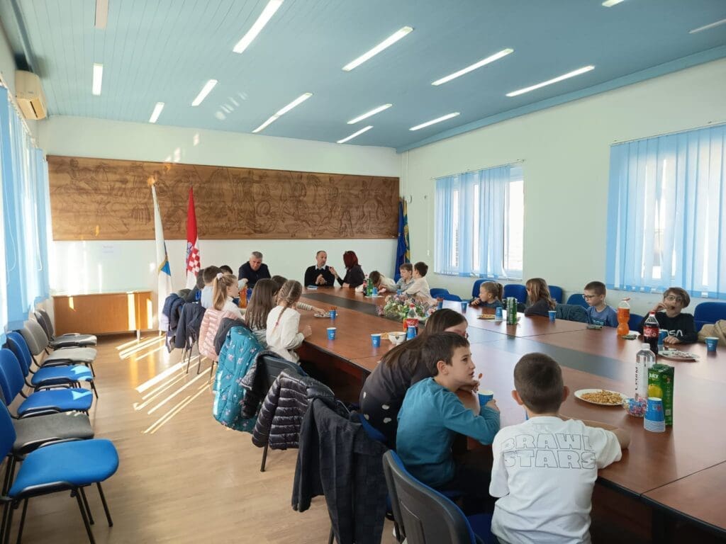 Učenici su sa zanimanjem razgledali prostorije Gradske uprave i imali priliku postavljati gradonačelniku razna pitanja. Posebno ih je zanimalo kako se donose odluke u gradu, je li teško biti gradonačelnik, a jedno pitanje posebno se izdvojilo i nasmijalo sve prisutne – „Kad će opet doći Grše?“