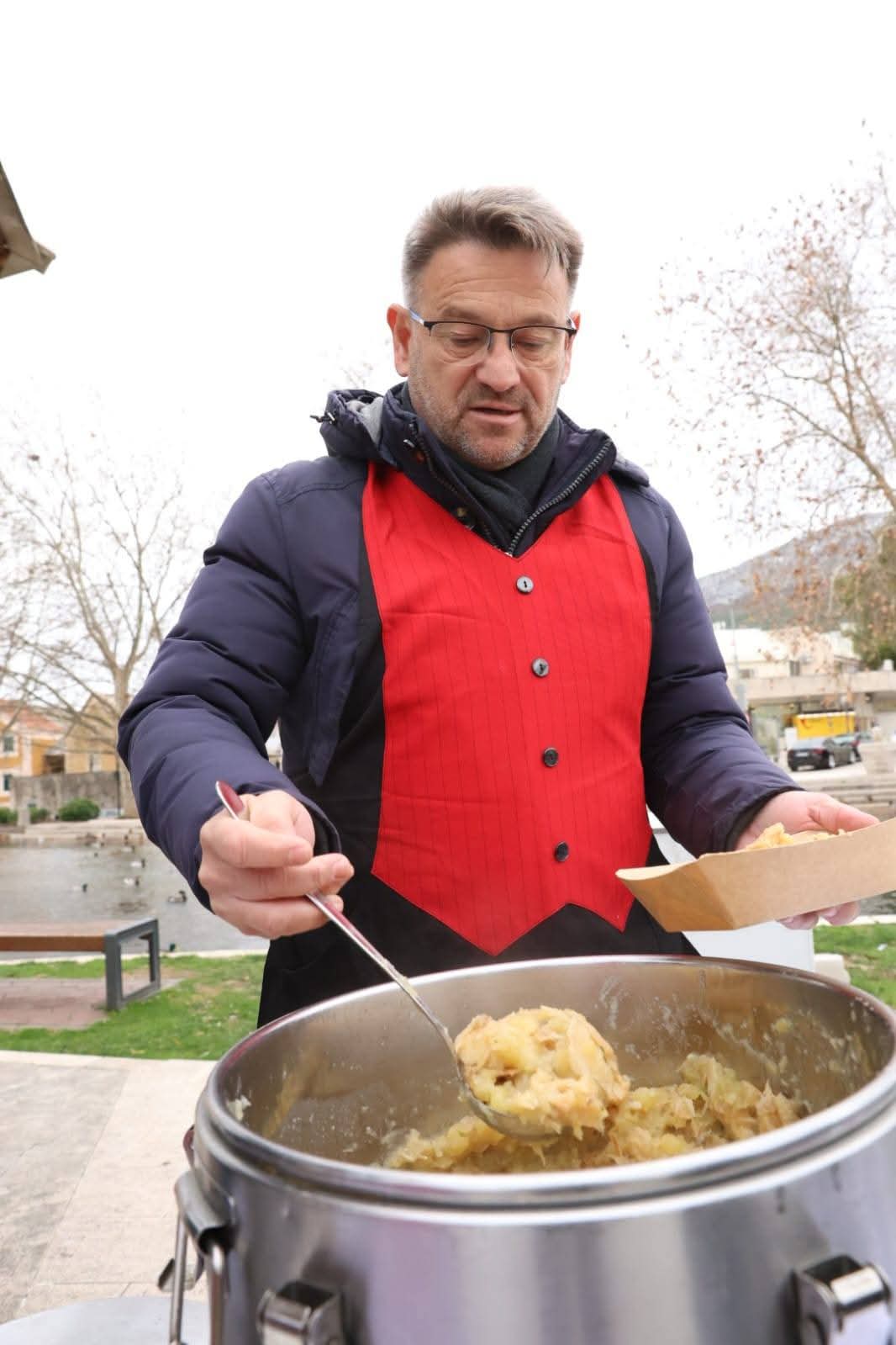 Ni jaka bura, ni hladnoća nisu obeshrabrili sugrađane Solina da uživaju u blagdanskoj atmosferi Badnjeg dana. Gradonačelnik Dalibor Ninčević osobno je dijelio bakalar, fritule i čašicu vina svim okupljenima, čime je dodatno uljepšao dan građanima svog grada.