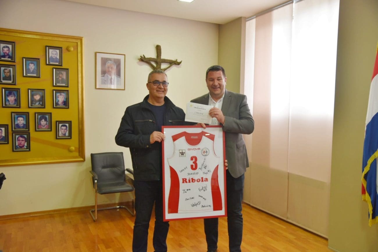Ovom prilikom gradonačelnik je uručio poklon bon od 1000 eura, a zauzvrat je dobio dres ŽOK Ribola.