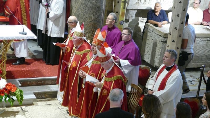 Prof. dr. don Ivica Žićić je na početku svoje homilije kazao da se svake „godine splitska Crkva o svetkovini svetoga Dujma obnavlja sa svojih izvora. Iako seže daleko u prošlost, svijetlo svjedočanstvo vjere salonitanske zajednice s Dujmom na čelu daje osobiti sjaj patini naše tradicije. Dujmove kosti – ti znakovi smrtnosti – otkriveni pogledima u ovom večerašnjem slavlju, ponovno govore svjedočanstvom neuvele hrabrosti. U tu se hrabrost pozvana zagledati Dujmova Crkva, splitska Crkva rođena u žaru svjedočanstva njezina prvoga biskupa i navjestitelja.“