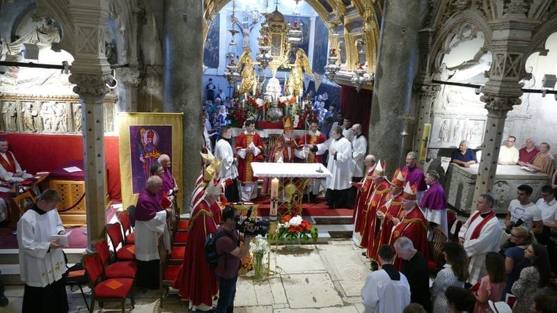 Kao što je običaj od najstarijih vremena, prepozit Metropolitanskoga kaptola u Splitu mons. Nediljko Ante Ančić i gradonačelnik grada Splita Andro Krstulović Opara otvorili su moćnik na oltaru sv. Dujma.