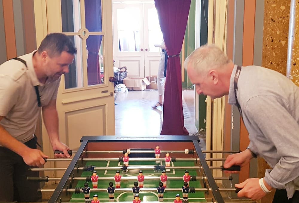 Iako grad trese kriza zbog ostavke predsjednika Gradskog vijeća Jure Šundova i zazivanja novih izbora, političari su na konferenciji bili poprilično opušteni. Gradski vijećnik stranke Pametno Renato Čupić i gradonačelnik Splita su nakupljeni stres odlučili "razbiti" partijom stolnog tenisa.