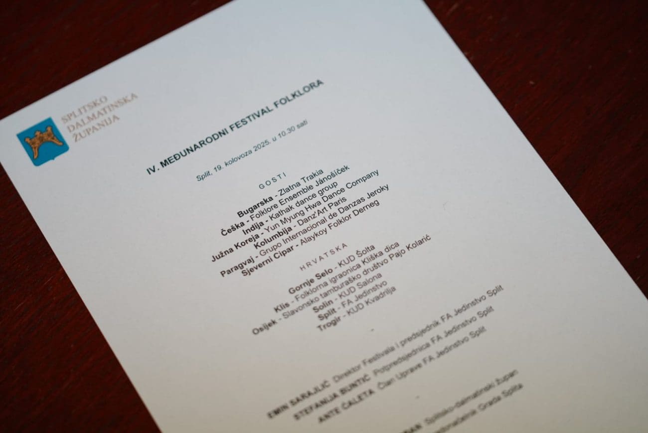 Tom je prigodom istaknuta važnost Festivala koji već četvrtu godinu zaredom okuplja folklorne skupine i ansamble iz različitih dijelova svijeta, stvarajući most između kultura te promovirajući bogatu nematerijalnu baštinu kroz ples, pjesmu i narodnu nošnju. Festival, osim što pridonosi očuvanju i prenošenju tradicije na mlađe generacije, značajno doprinosi i obogaćivanju kulturno-turističke ponude Splita.