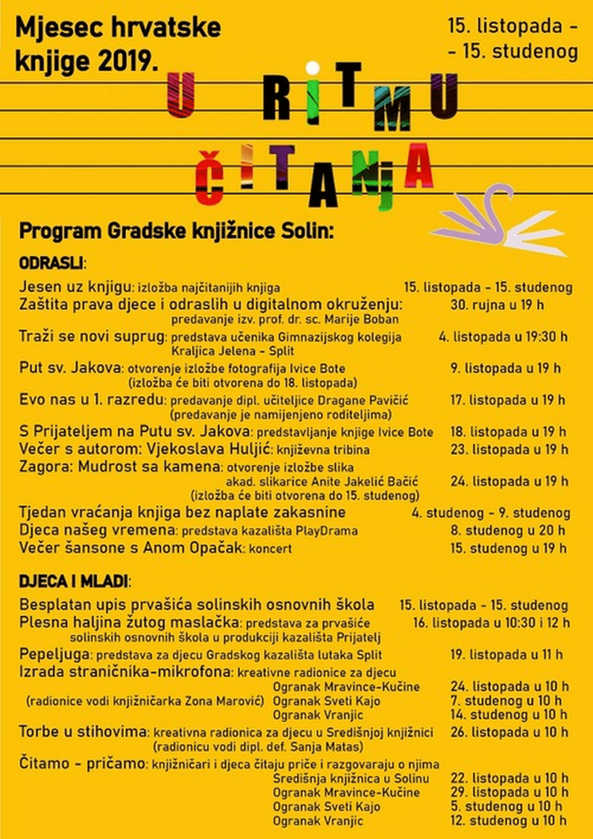 Gradska knjižnica Solin poziva sve zainteresirane da im se pridruže u sudjelovanju u Mjesecu hrvatske knjige.