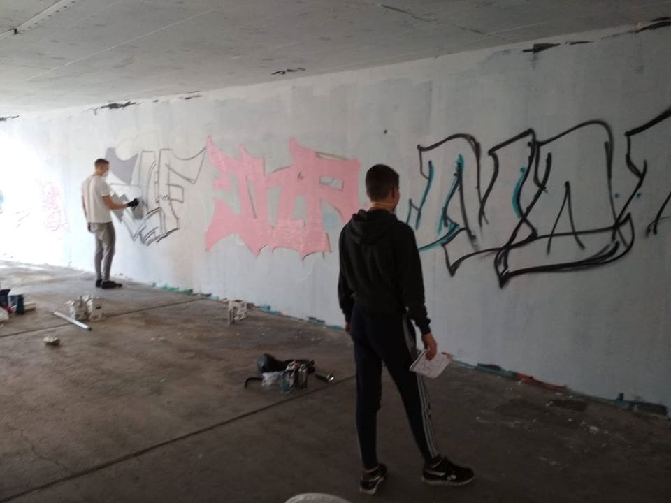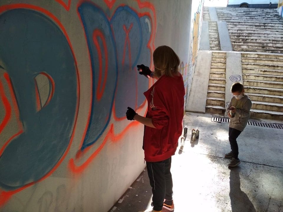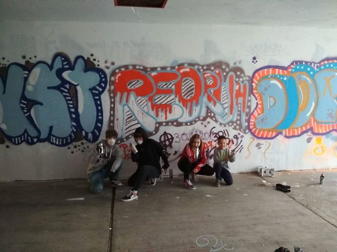 Polaznici Graffiti škole svoje su znanje i umijeće stečeno na ovotjednim radionicama danas pokazali u oslikavanju pothodnika na Skalicama.
