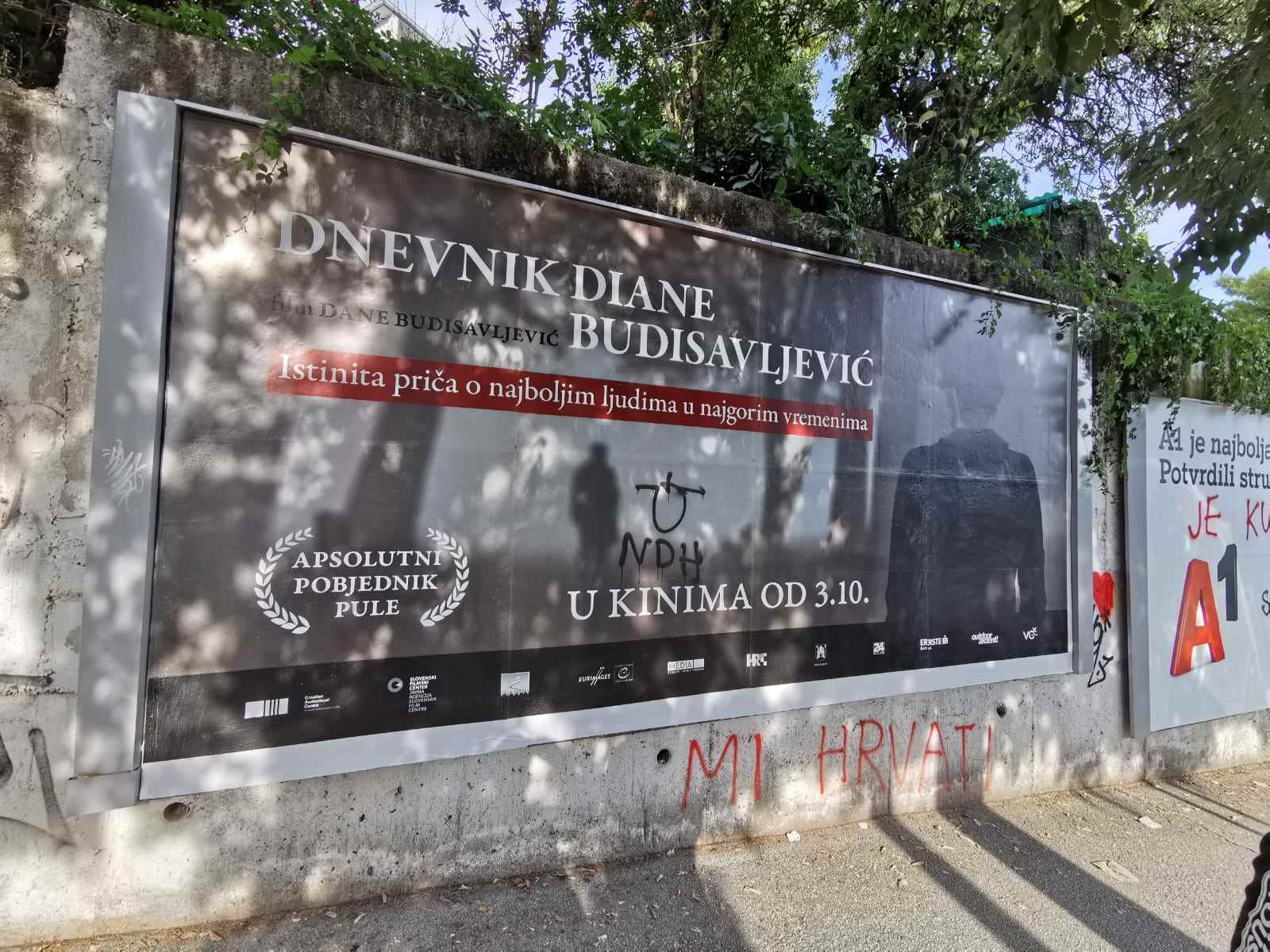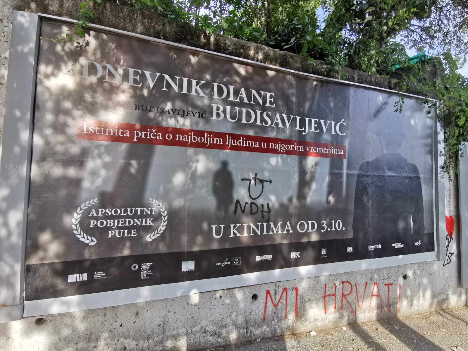 Tako je plakat koji reklamira nagrađivani hrvatski film "Dnevnik Diane Budisavljević" ispisano stilizirano slovo "U", uz dodatak "Mi Hrvati" ispod plakata.