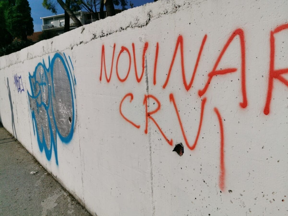 Zid u Ulici Bruna Bušića u Splitu, kao i nekoliko tamošnjih oglasnih plakata išarano je grafitima različitih uvredljivih sadržaja.