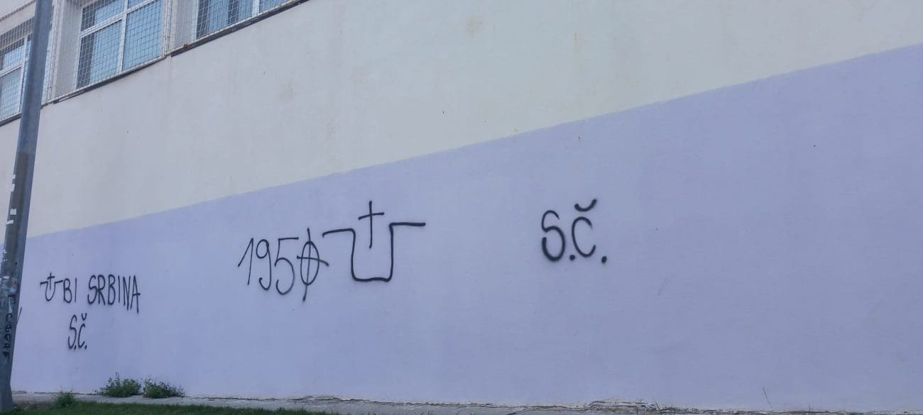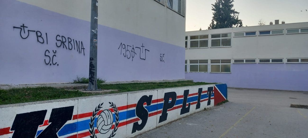 Na zidovima školske dvorane na Plokitama jutros su osvanuli uvredljivi grafiti s porukama poput "Mrš iz Hrvatske" i "Ubij Srbina", među ostalima, što je izazvalo ogorčenje stanovnika kvarta i roditeljima učenika koji pohađaju obližnju školu.