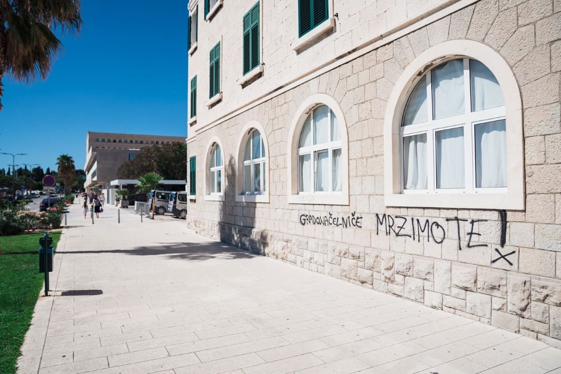 Jutros su na zgradi Banovine, ali i oko Poljuda osvanule poruke pogrdnog sadržaja, uglavnom usmjerene prema splitskom gradonačelniku Andri Krstuloviću Opari.