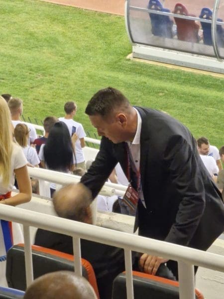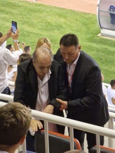 Njega smo snimili u svečanoj loži stadiona, a do njegovog mjesta ga je dopratio jedan muškarac koji ga je cijelo vrijeme držao.
