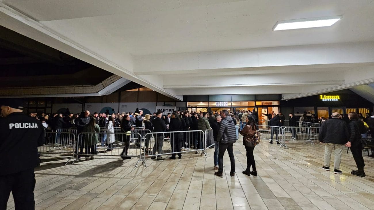 Ljudi još u redu čekaju da uđu u dvoranu.