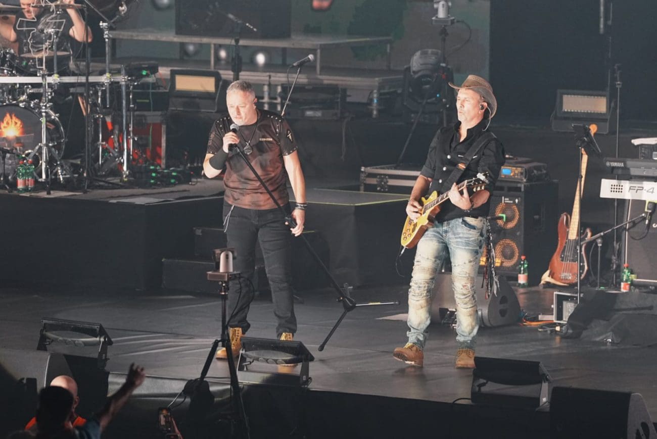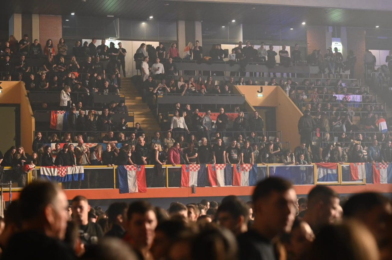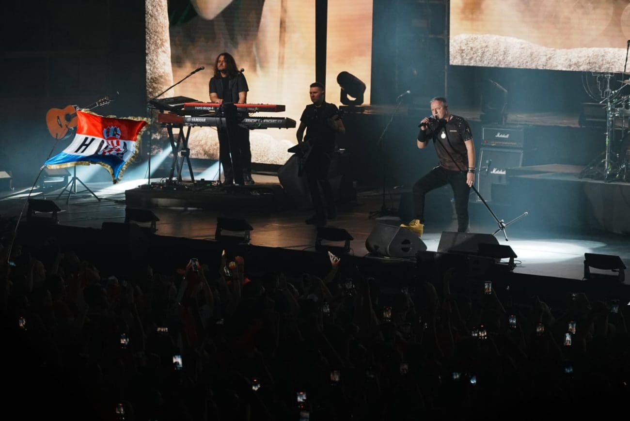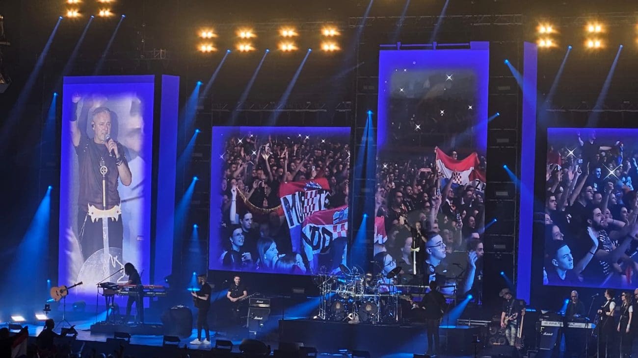 20:40 - Na koncert je stigao i Miro Bulj. A rekviziti s hrvatskim motivima su preplavili gripe. Pogledajte.
