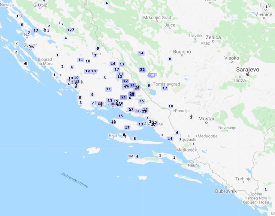 Tako je u Trilju palo 26 litara po kvadratnom metru, a slijede Sinj 25, Ruda 24, Hrvace 22, Dugopolje 21, Solin 19, Drniš i Zadvarje 18, Kaštel Gomilica 17, Bol 16 itd.