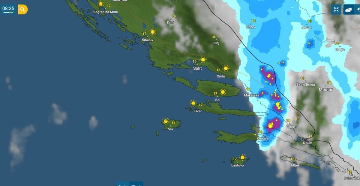 Grmljavinski sustav odmiče na istok, iza 8 sati zahvatio je šire vrgoračkog područje, te ide prema dolini Neretve. Tamo u 9 sati lokalno ima izraženijih neverina.