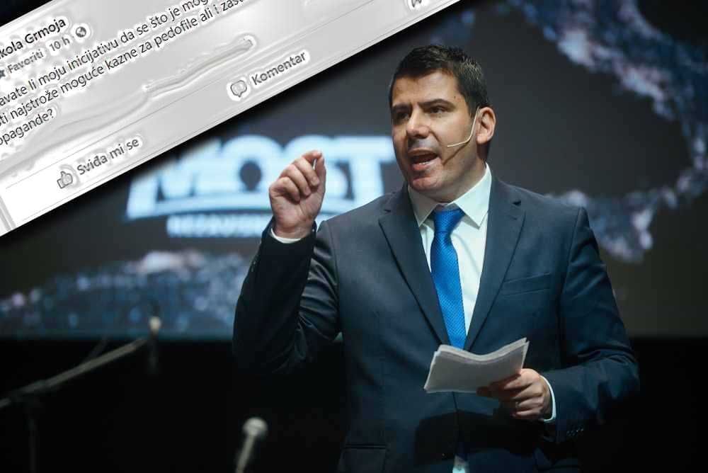 I dok je u emisiji rekao da će ta moguća zabrana takozvane LGBT propagande biti dio njegova antipedofilskog zakona, koji će predložiti saboru, nekoliko sati poslije emisije Grmoja je, čini se, odlučio da će ono što on naziva LGBT propagandom uvrstiti u svoj prijedlog antipedofilskog zakona i sinoć na Facebooku svoje sljedbenike pitao na podržavaju li ga u tome.