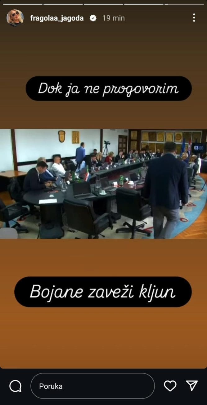 "Dok ja ne progovorim, Bojane zaveži kljun", poručila je Jagoda na Instagramu.