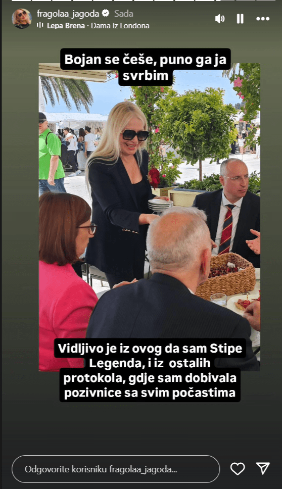 Nakon što je dogradonačelnik Bojan Ivošević reagirao na Instagram objavu "grofice" Jagode Schön Milesi, kazavši da je 'udaljena od stola jer je satrala s naslikavanjem, žena je kad smo krenuli put sv. Frane dotrčala do mene i doslovno se zakačila na 15 sekundi', uslijedila je reakcija same grofice.