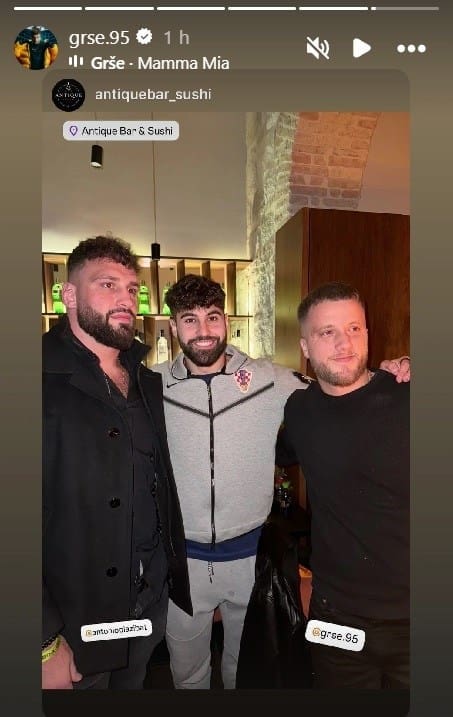 Utakmicu na Poljudu pratio je s kickboksačem Antonijem Plazibatom. Nakon utakmice su se slikali s Ivanom Rakitićem, a onda su se svi zajedno družili u splitskom klubu.