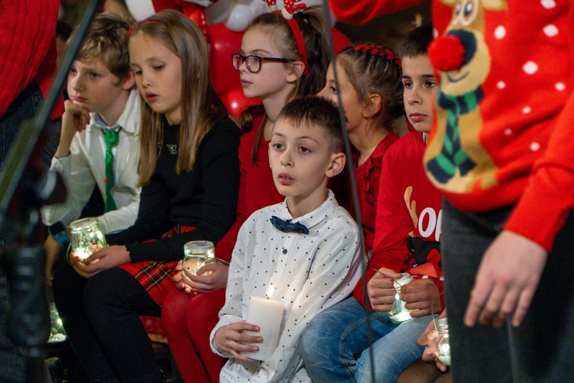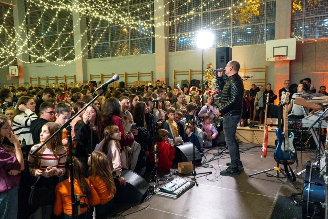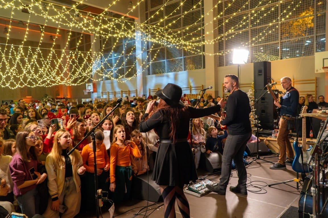 Djeca nižih razreda škole su uz učiteljice izradili veliki broj božićnih ukrasa prodanih na božićnom sajmu započetim paljenjem druge svijeće Gastroadventa koju su zajedno, među učenicima, zapalili Olja Martinić, župan Blaženko Boban, ravnatelj škole, pedagogica i novinari. Upravo je druga adventska svijeća mira označila otvaranje Dobrotvorne božićne čarolije koja se nakon sajma u predvorju škole nastavila do posljednjeg mjesta, prepunoj dvorani škole, u kojoj su osmijehe na lica izmamili nastupi školske djece, plesnih skupina, Čarobni animatori, Klapa Sv. Florijan, Nenad Vetma, Marjanke, Roko Sedlar, Ivo Amulić, Izabela Martinić, Teo Grčić, Dj Dado... Dvorana, s ukrasima kojima su čarobnu atmosferu omogućili Studio Tulip, Rasvjeta vjenčanja Mediarent, Light up rasvjeta, Božićno selo, Svijeće Žunić, Balloon party i souvenir shop, te HGSS koji je postavio i lampice na krov dvorane je bila tako uistinu ozračje adventskog bajkovitog mira, topline i uistinu predivne atmosfere.