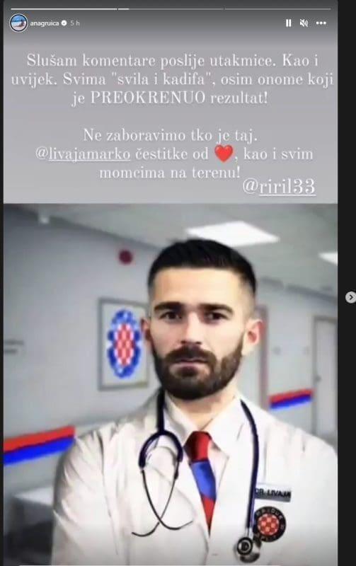 Na zaboravimo tko tak. Marko Livaja, čestitke od srca, kao i svim momcima na terenu", poručila je Gruica na svom Instastoryju.