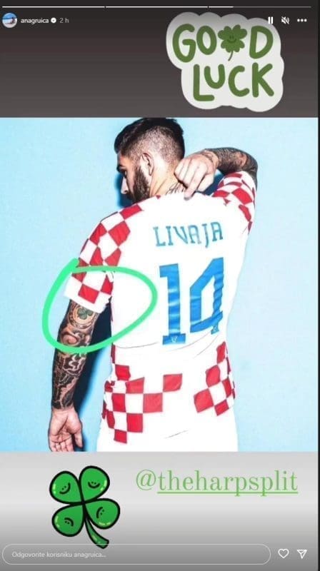 Na sljedećoj objavi zaokružila je detalj Livajine tetovaže na nadlaktici lijeve ruke. Među ostalim, dio tetovaže je djetelina s četiri lista za koju je Gruica ustvrdila da donosi sreću.