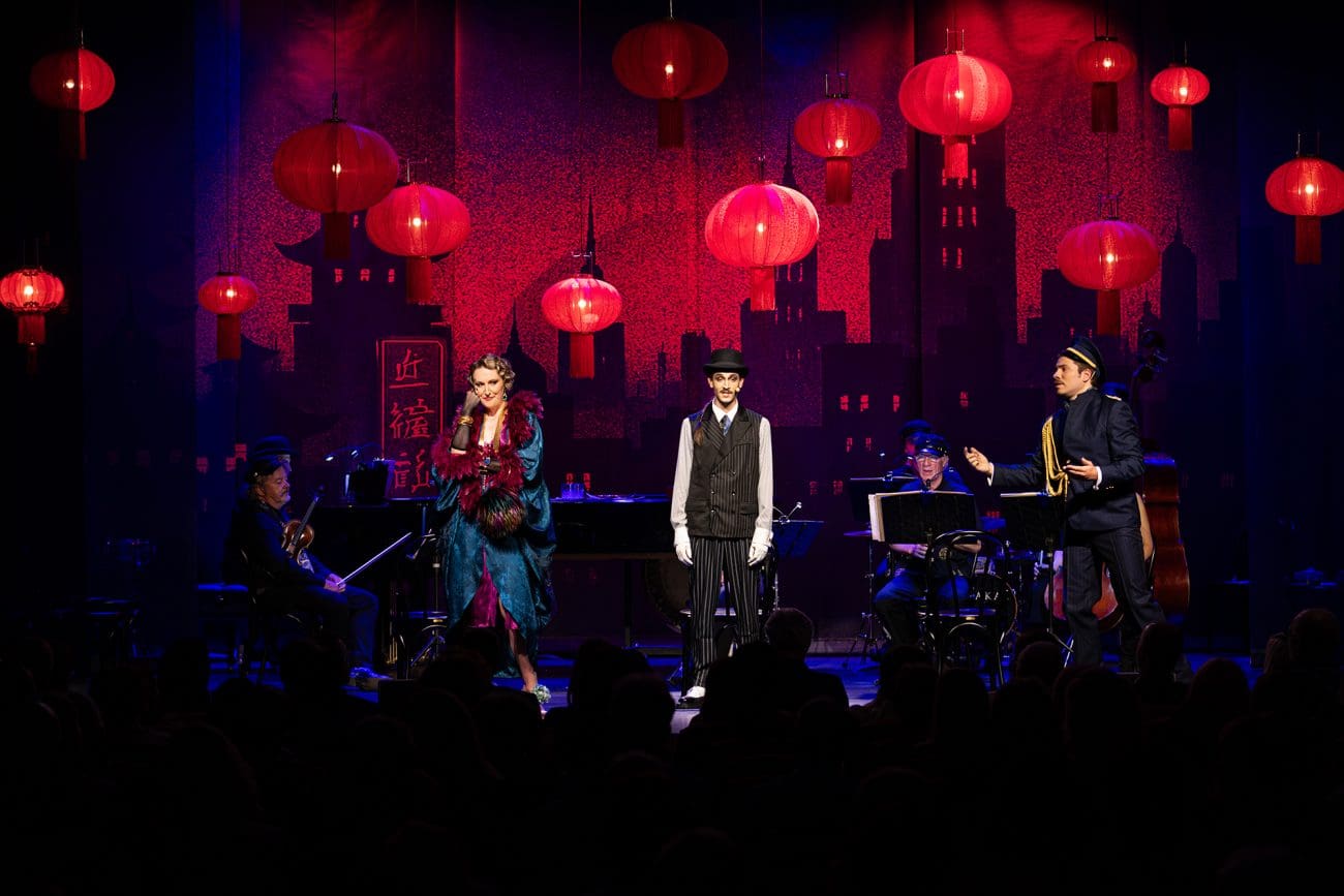 Uzbudljivu režiju „Avanture u Šangaju“ potpisuje redatelj Ivan Leo Lemo, a dirigent Hari Zlodre zadužen je za vrhunski glazbeni segment. Redatelj je kultnu tročinku adaptirao u kabaretskom ključu, imajući na umu ograničenja, ali i potencijal koncertne dvorane. Ulogu zavodljive Japanke Min-Sai-Che tumače sopranistice Neda Pejković i Sara Žuvela. Britanskog oficira Reginalda Smileyja, partnera Min-Sai-Che, utjelovit će tenori Bože Jurić Pešić i Ileš Bečei. Ulogu vlasnika kabareta Hanka Dodswortha igra bariton Erol Ramadanović, a u cipele njegove partnerice, pustolovke Jessey Morney, uskočit će mezzosopranistice Jelena Kordić i Dora Jana Klarić. Ulogu sluge Bonnieja tumači glumac Mihael Elijaš.