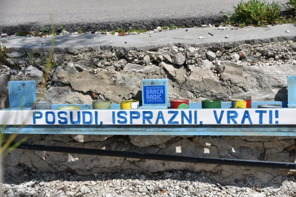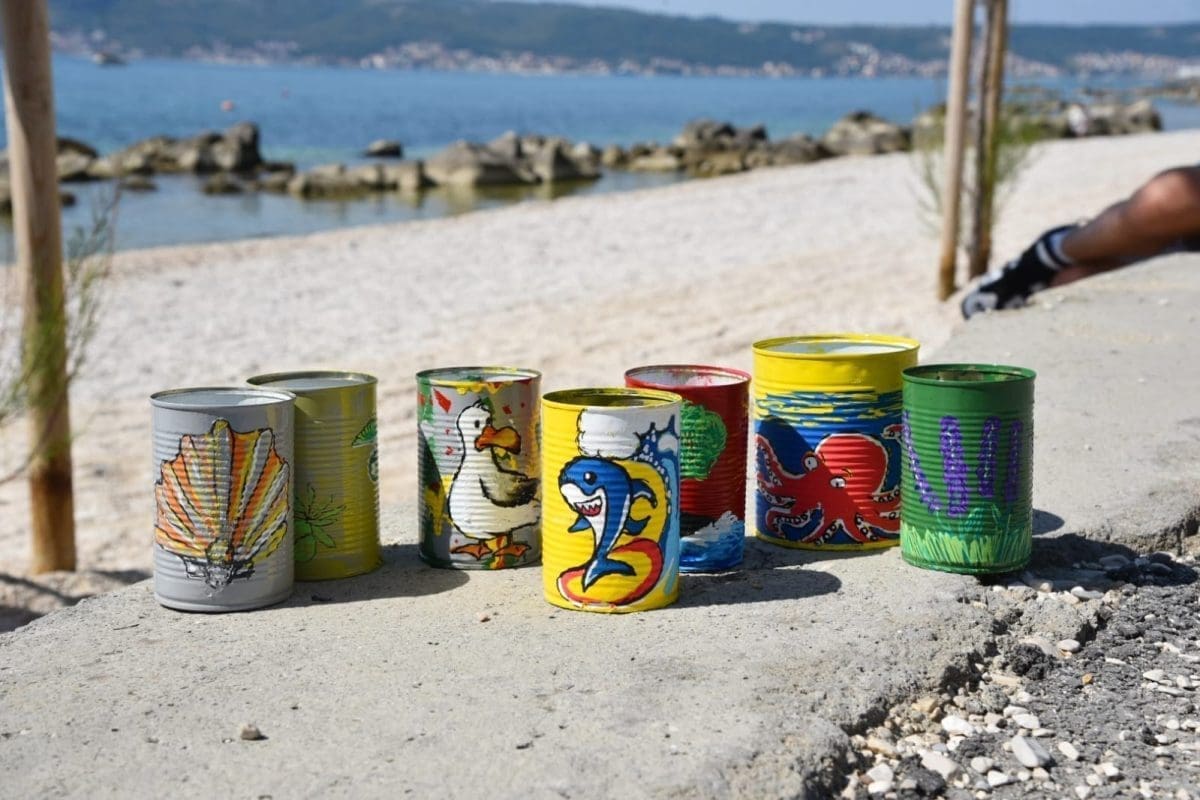 Uz ovu akciju, na plaži Bile odvijao se drugi dio akcije, a to je postavljanje postolja i pepeljara na plaži koje su izradili učenici i profesori SŠ "Braća Radić". Radi se o oslikanim limenkama koje posjetitelji mogu koristiti dok su na plaži te nakon odlaska sadržaj istresti u kantu za smeće, a limenku odložiti na označeno mjesto. Na ovaj način želi se smanjiti onečišćenje plaže, a ako se akcija pokaže učinkovitom "pepeljare" će se postaviti na sve plaže u Kaštel Štafiliću.