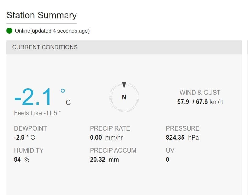 Snijeg pada na Dinari i Kamešnici. Na mjernoj postaji na planinarskom skloništu Pume, ispod Velike Duvjakuše na Dinari, temperatura zraka je -2°C, a zbog olujne bure osjet hladnoće je -12°C. Prvi put ove jeseni stvorio se snježni pokrivač.