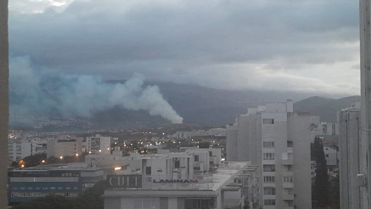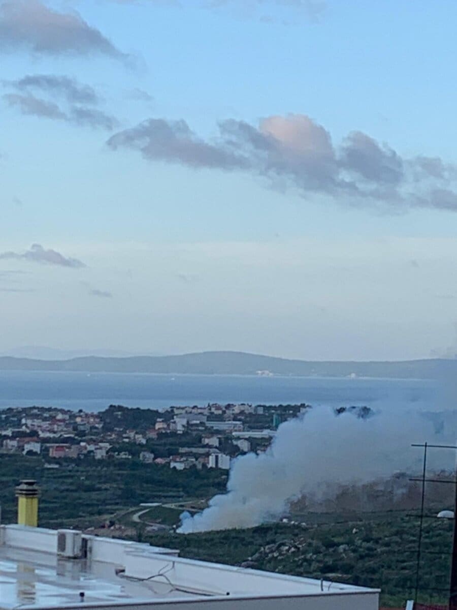 Požar je jutros i dalje aktivan, a gusti dim širi se s Karepovca. Požar se vidi i s panoramske web kamere na Mosoru, a ovdje možete pratiti stanje UŽIVO.