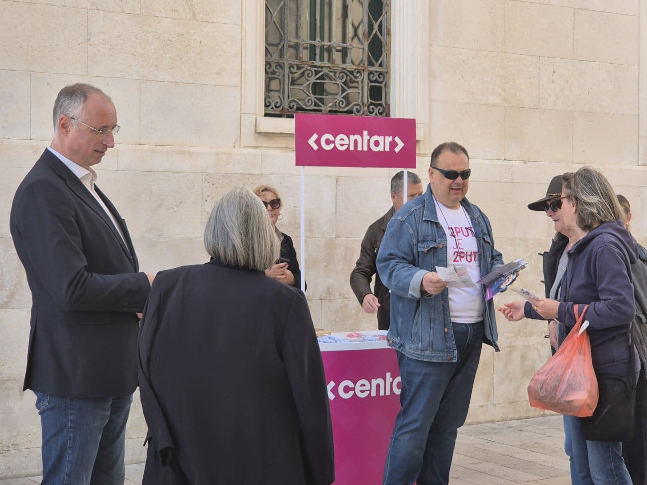 Stranka Centar na dnu Marmontove ulice postavila je svoj štand, a građani u prolazu mogu porazgovarati i sa splitskim gradonačelnikom Ivicom Puljkom, koji je kandidat i na ovogodišnjim izborima.