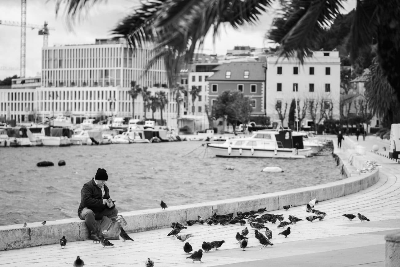 Danas je okrenilo na jugo stoga ne čudi šta "nema pasa" u centru grada. Ajde, nije baš da nema nikog živog, naišli smo na pokojeg usamljenog prolaznika koji je žurio preko Rive da se što brže skloni s vjetrometine.