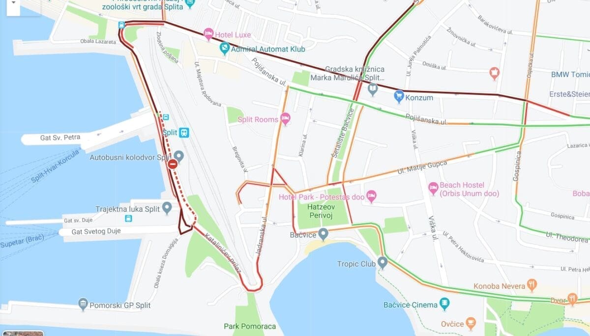 Od putnika iz Trajektne luke doznajemo da od izlaska iz trajekta do nadvožnjaka na Bačvicama treba 25 minuta.