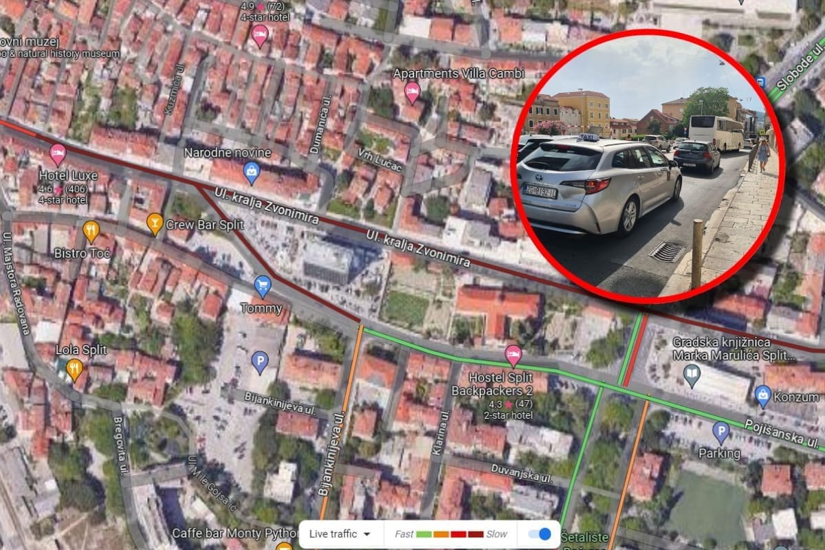 Kao što je vidljivo na prikazu s aplikacije Google Traffic, Zvonimirova ulica cijelom dužinom prema luci obojana je u crveno.