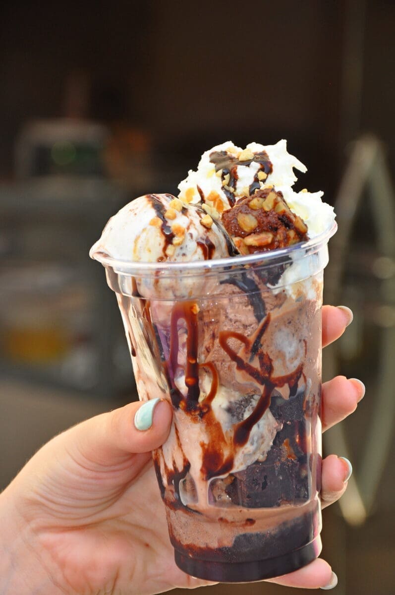 Splitska tvornica slatke čarolije osim sladoleda, nudi svježe pečene waffle, čokoladni lava kolač te kreacije s potpisom slasnih naziva poput Macadamia Crunch ili Brownie Explosion, a u ponudi su i pića sa sladoledom, pa čak i hladni frappe od kave s macaron kolačićima!