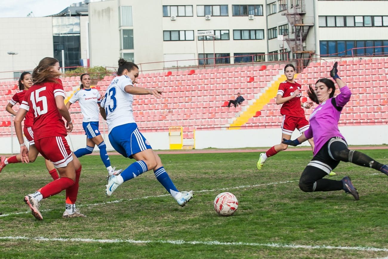 Nogometašice Splita i Hajduka danas su od 14:00 sati igrale utakmicu 10. kola Magenta lige. Slavile su Hajdučice rezultatom 0:8.