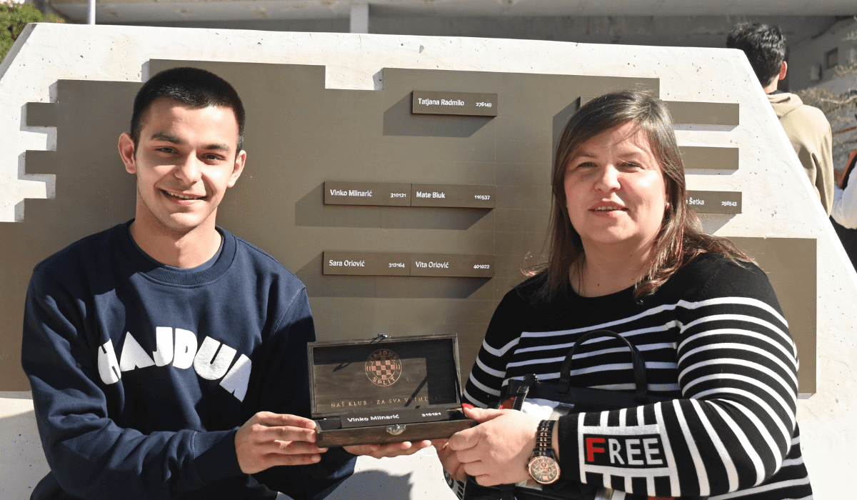 Mlinarići koji su rodom iz Vukovara, od rata s adresom u Zagrebu, a trenutno žive u Međugorju Hajduk već generacijama nose u srcu. Na nedavno održanoj svečanosti ta iskra se dodatno rasplamsala unikatnim, uranjenim poklonom za 18. rođendan, koji ostaje zauvijek.