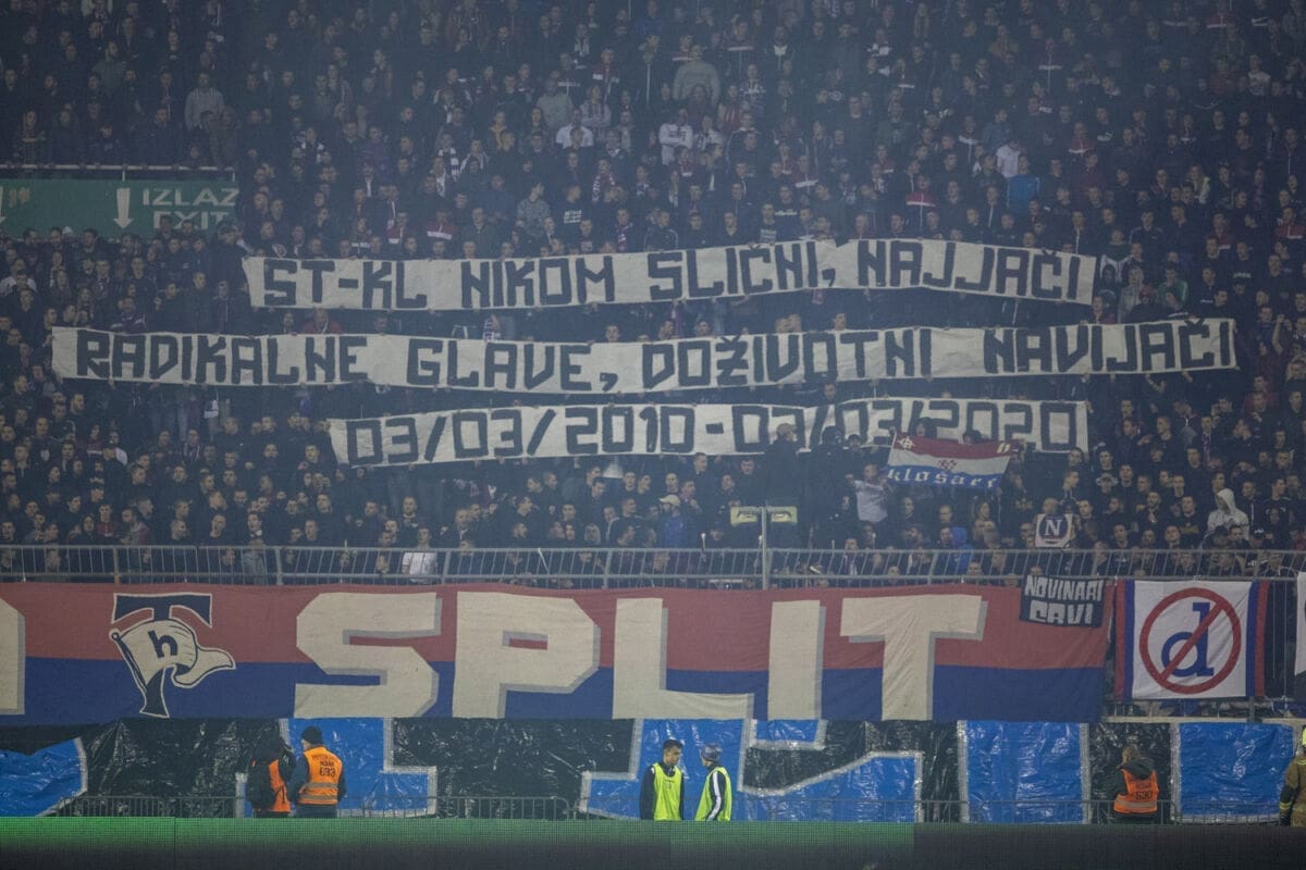 Torcida je već u drugoj minuti prekrila sjever efektnom koreografijom, a Posavec je izvrsno obranio Ademijev udarac. Na tribinama je u početku bilo življe nego na terenu, Torcida je u 7. minuti promijenila koreografiju u novu pod natpisom „Fantomi priotehnike“ uz pjesmu „Samo tebe volim ja“.